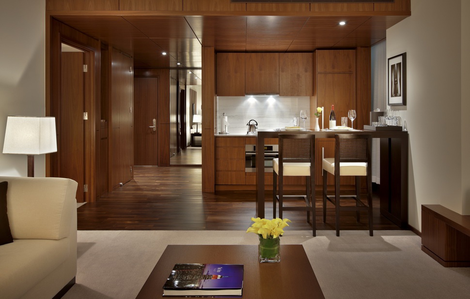 Residence Suite: – 101 м2. Уютный номер, декорированный в теплых тонах, с видом на Fifth Avenue или город на фоне неба расположен 18 – 27 этаже отеля. Состоит из спальни с кроватью king-size, гостиной (во многих номерах есть диван-кровать queen-size), кухни, оборудованной техникой Miele, ванной комнаты, отделанной мрамором, с душем и ванной и туалетной комнаты. Возможно размещение двух дополнительных кроватей.