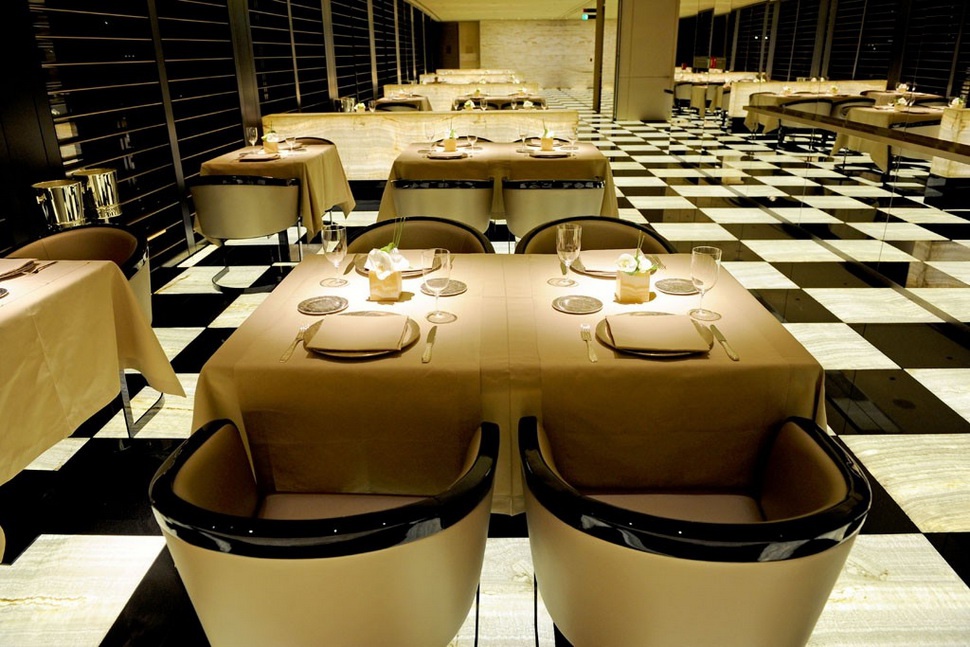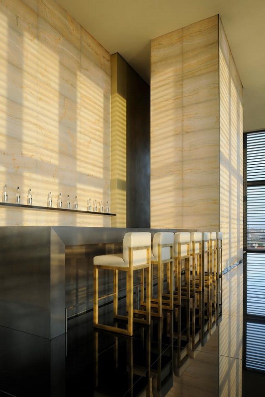 Стильный бар Armani со стеклянными стенами и захватывающим видом на город – отличное место для аперитива, вечернего коктейля, отдыха и встреч.