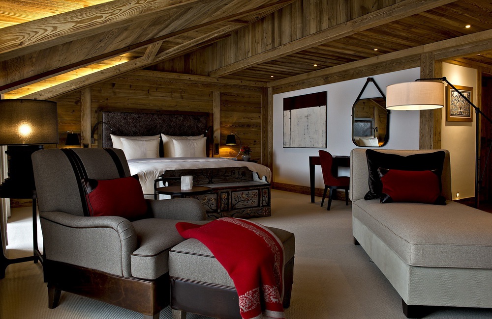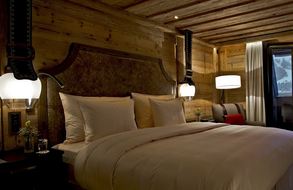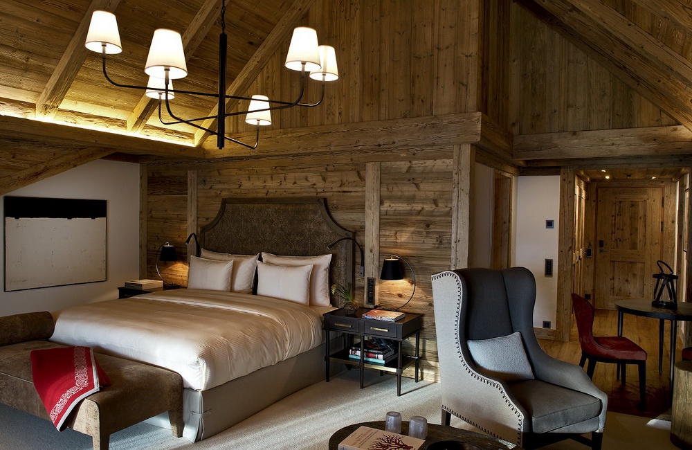 Deluxe Suite: состоит из спальни, гостиной зоны с выложенным из камня камином и обеденной зоной, ванной комнаты с ванной и отдельным душем, гостевой туалетной комнаты, гардеробной, балкона с видом на ледник Дьяблере и Гштаад.