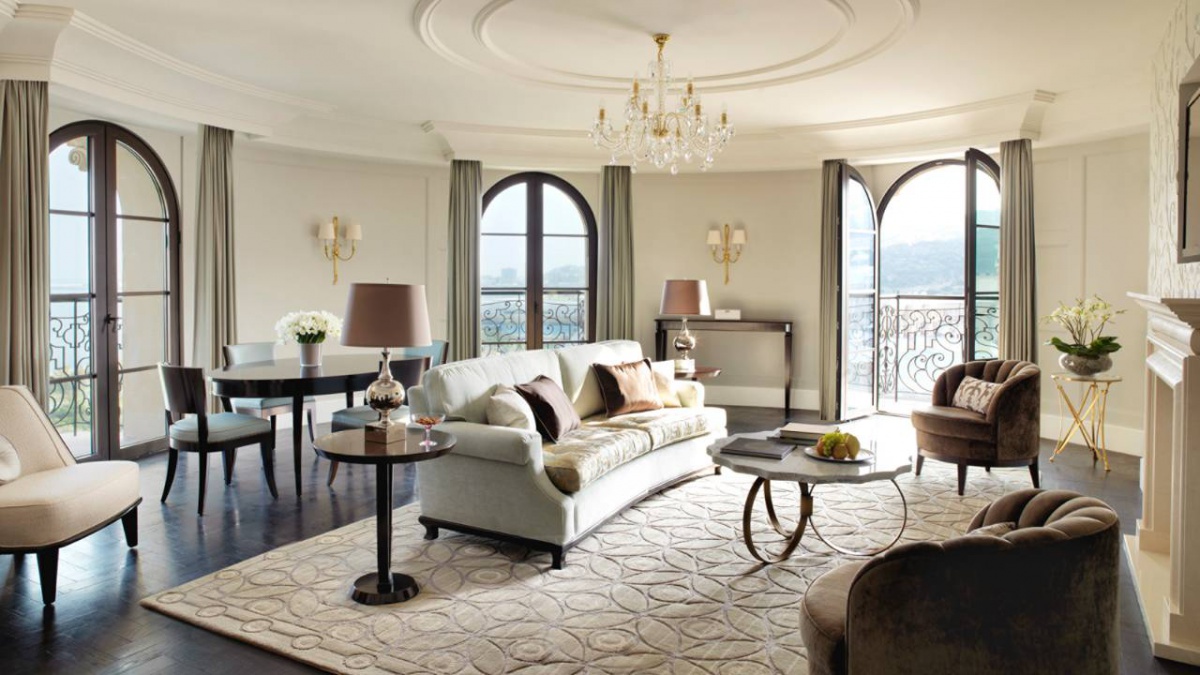 Президентский люкс Khazar: 284 кв. м . Президентский люкс Khazar с видом на Каспийское море и набережную воссоздает великолепие старинных особняков Баку. Эти роскошные апартаменты на восьмом этаже включают: большую гостиную, столовую, медиа-зал, рабочий кабинет, несколько балконов и просторную главную спальню с выходом в персональный тренажерный зал и личную спа-зону. Кровать «King Size». Одна ванная, отделанная мрамором. Размещение для 3 взрослых или 2 взрослых с 1 ребенком.