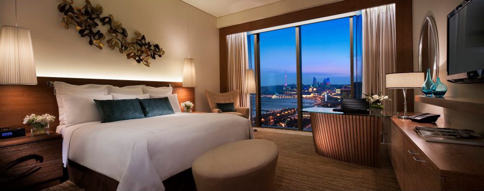 Просторный номер с кондиционером, телевизором с плоским экраном, док-станцией для iPod и сейфом для ноутбука. В роскошной ванной комнате установлены ванна и душ. Также предоставляются халаты и тапочки. В стоимость входит доступ в представительский лаундж с бесплатным питанием, безалкогольными напитками, бесплатными гладильными услугами и платными бизнес-услугами. Из окон номера открывается вид на площадь Свободы и Каспийское море.
