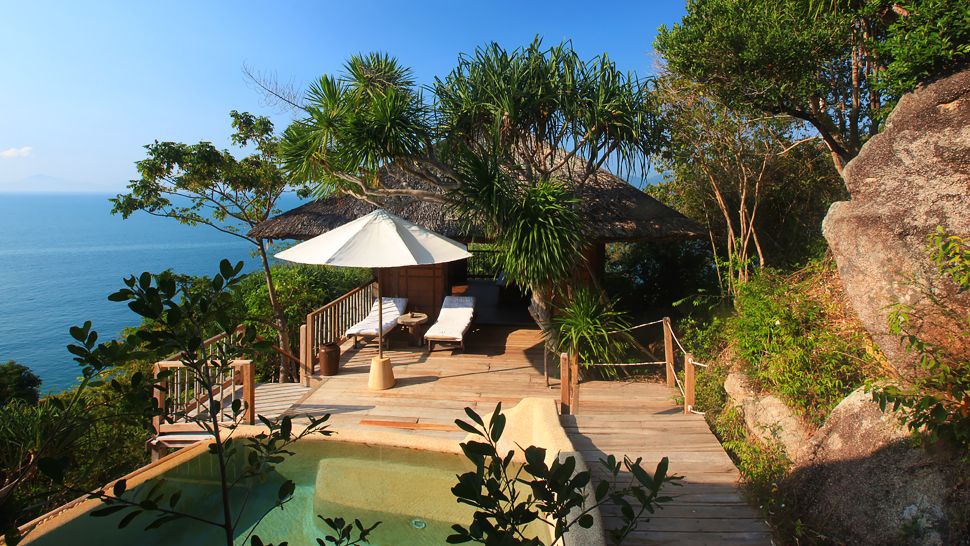 Hill Top Villa: 158 м2 — с видом на горы и Южно-Китайское море, включает в себя спальню, гостиную, ванную комнату с ванной, гардеробной и душем на открытом воздухе, собственный сад и бассейн с просторной террасой.