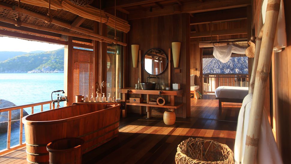 Rock Villa: 187 м2 — расположена в уединенном месте на скалистом берегу, включает в себя спальню, гостиную, ванную комнату с гардеробной, ванной и душем на открытом воздухе, террасу, собственный небольшой сад и бассейн.