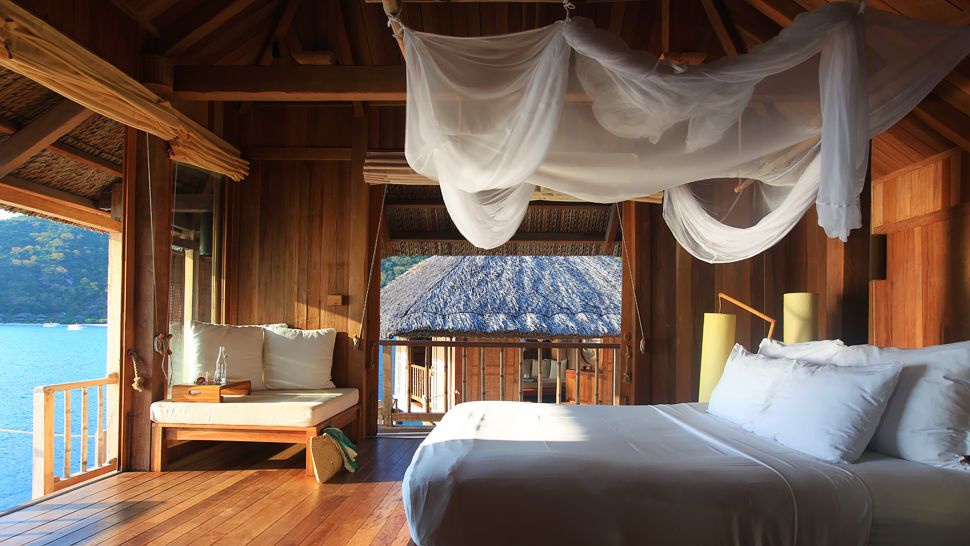 Water Villa: 154 м2 — расположена на побережье, включает в себя спальню, гостиную, ванную комнату с гардеробной, ванной и душем на открытом воздухе и бассейн c просторной террасой.