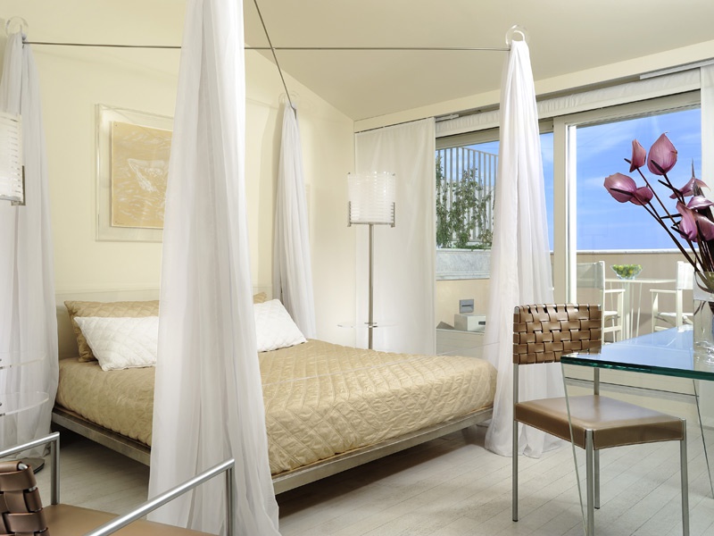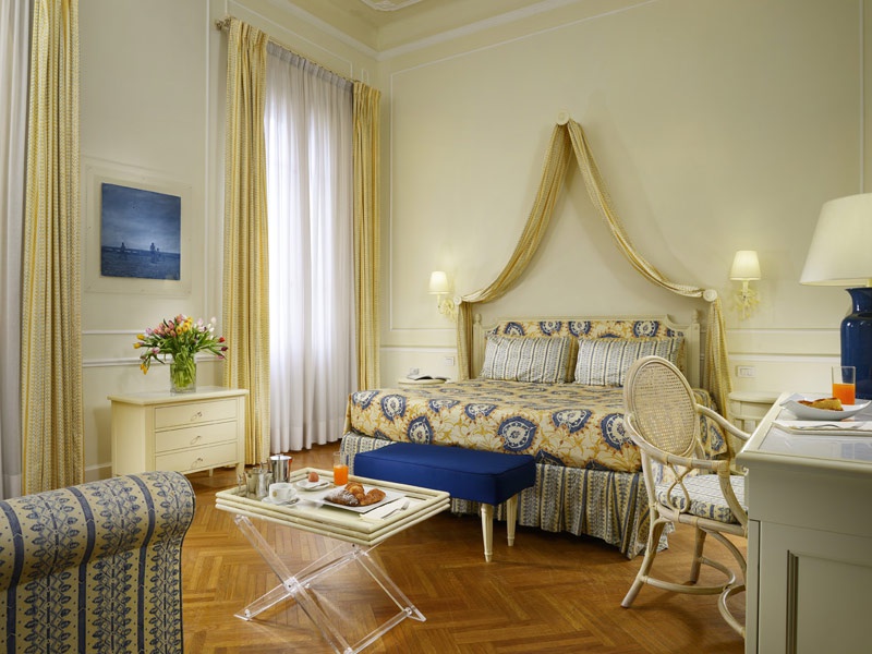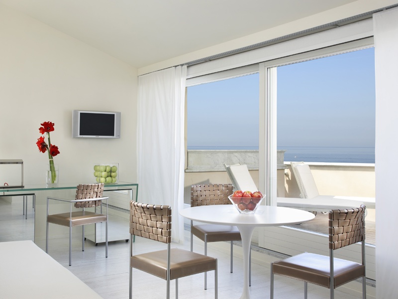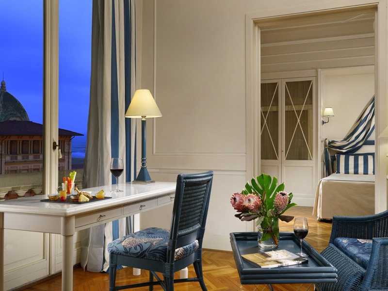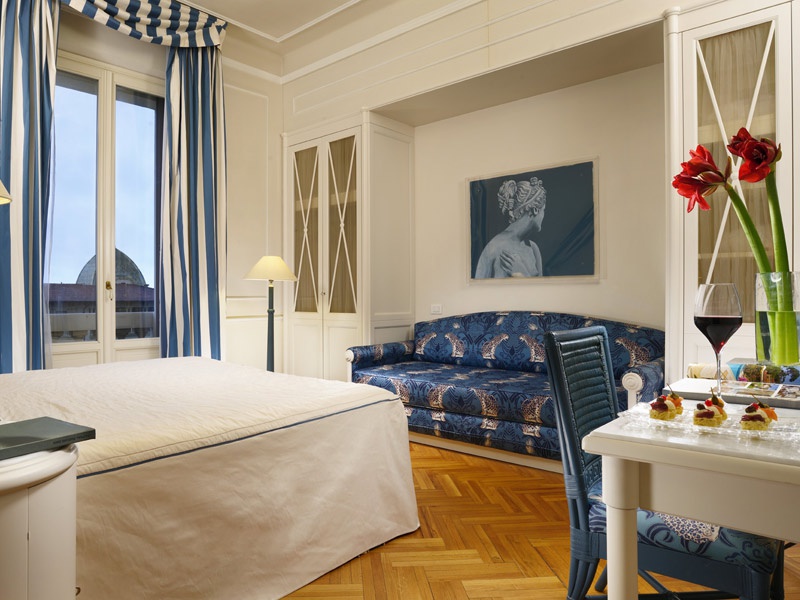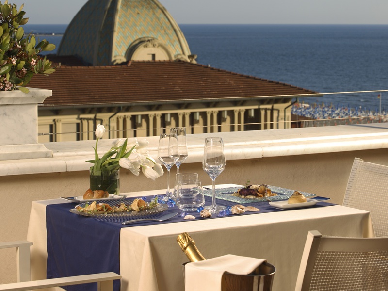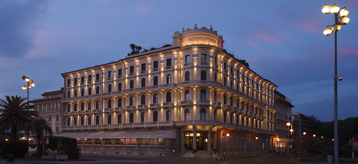 Номера и люксы гранд-отеля Principe di Piemonte с видом на море, внутренний двор или Апуанские Альпы располагаются на 5 этажах здания.