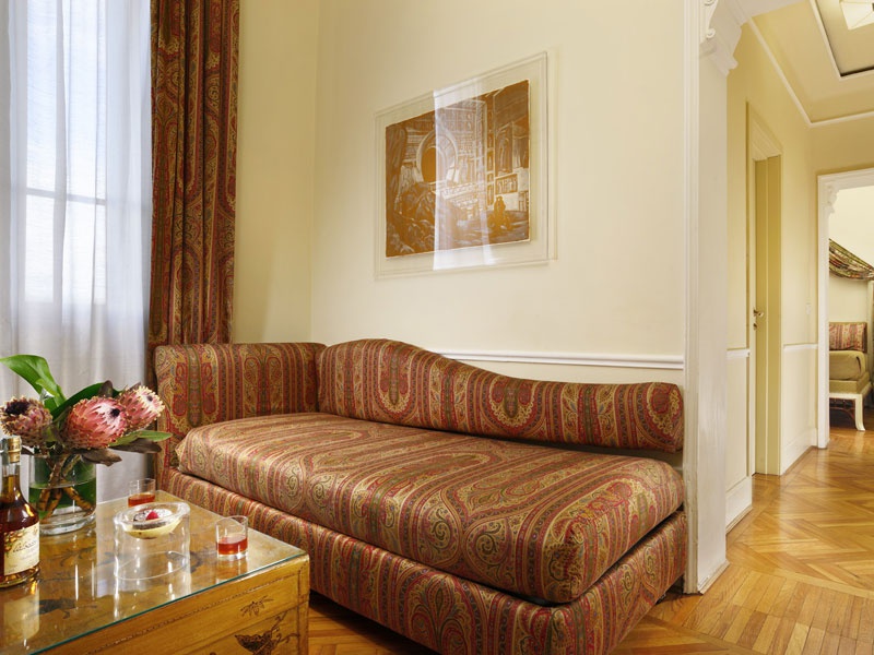 Номера на 1-ом этаже «в интернациональном стиле» выполнены в изысканных классических традициях и отделаны великолепными восточными тканями, бывшими в моде в XVIII веке в Париже.