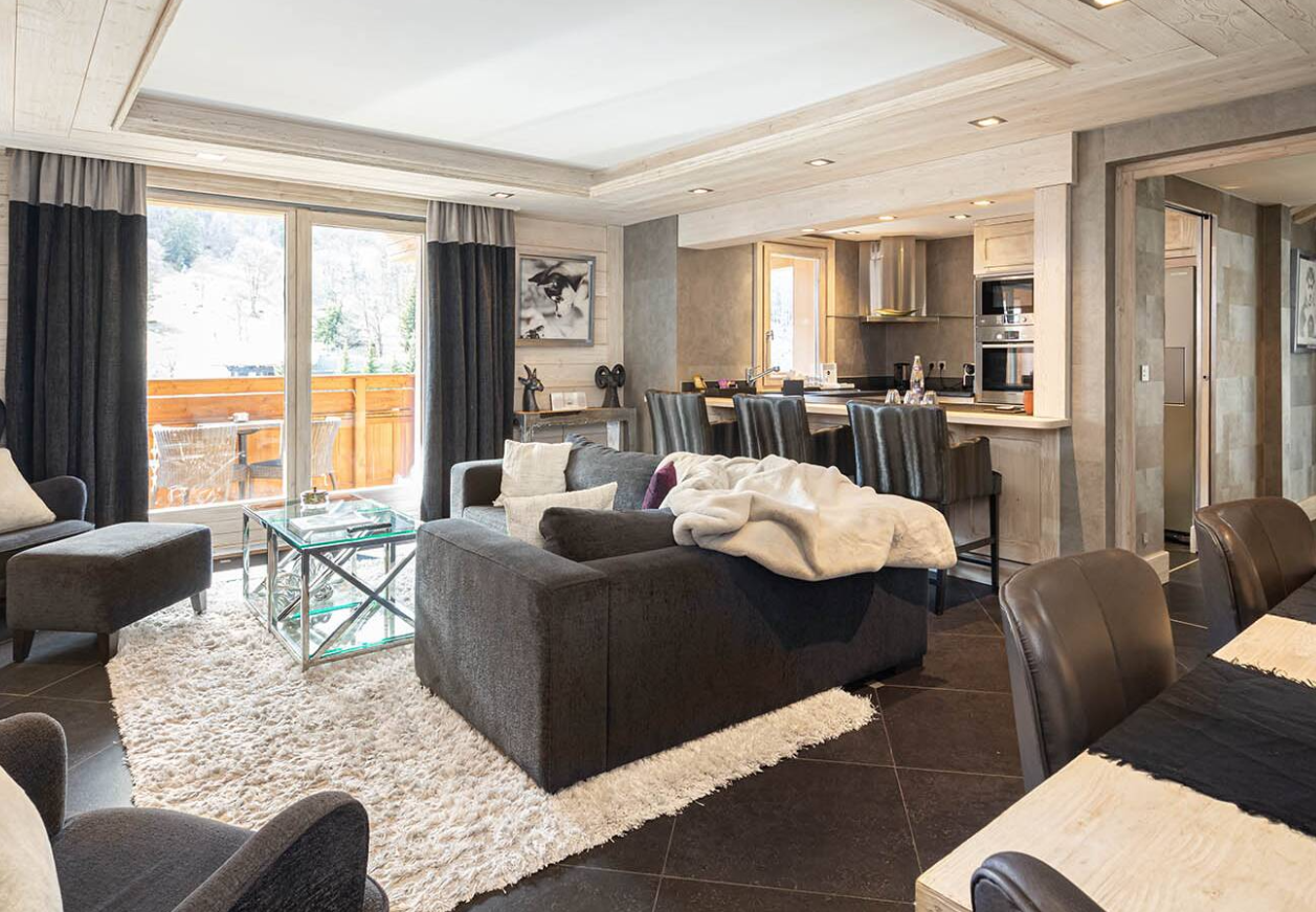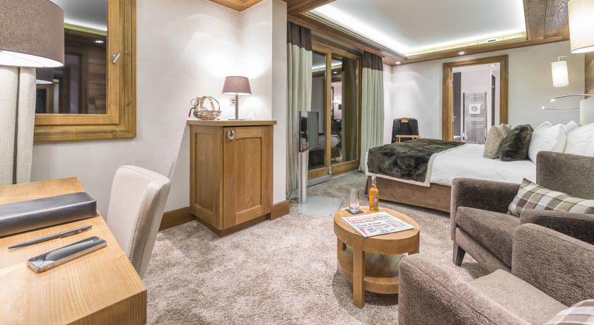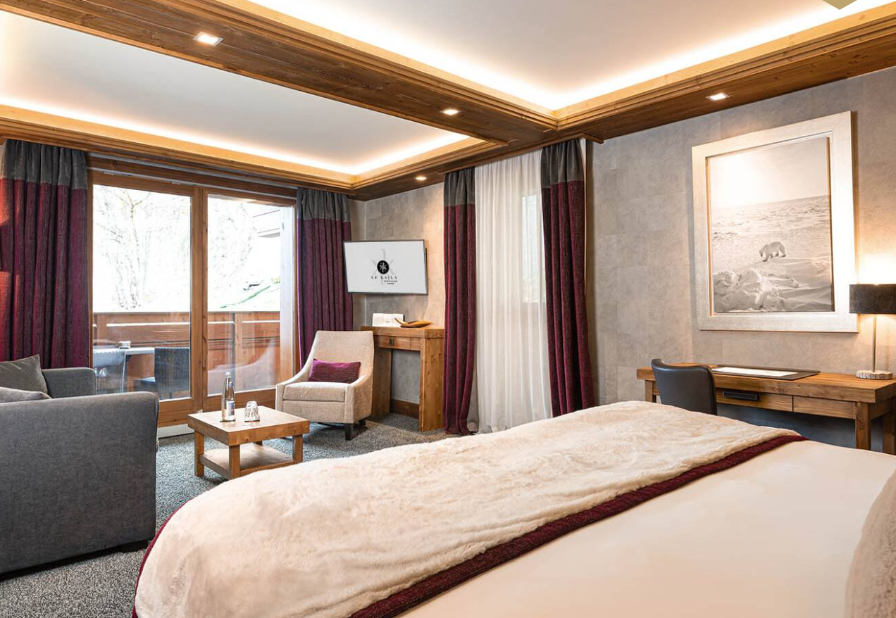 Шале Kaila — это дуплекс, расположенный на самом верхнем уровне отеля, откуда открывается захватывающий вид на поместье Мерибель. В нем есть две уютные спальни с гостиной. В первой есть ванная комната с естественным освещением, гидромассажная ванна и телевизор, а также паровой душ, а в другой — ванная комната (только ванна).