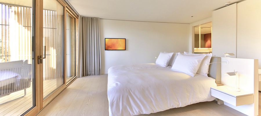 70 номеров и люксов созданы по специальному проекту для окружения гостей атмосферой спокойствия и уединения, они оформлены в спокойной цветовой гамме, в отделке использовались теплые и только натуральные материалы, а большие окна подарит вам наслаждение теплыми солнечными лучами.