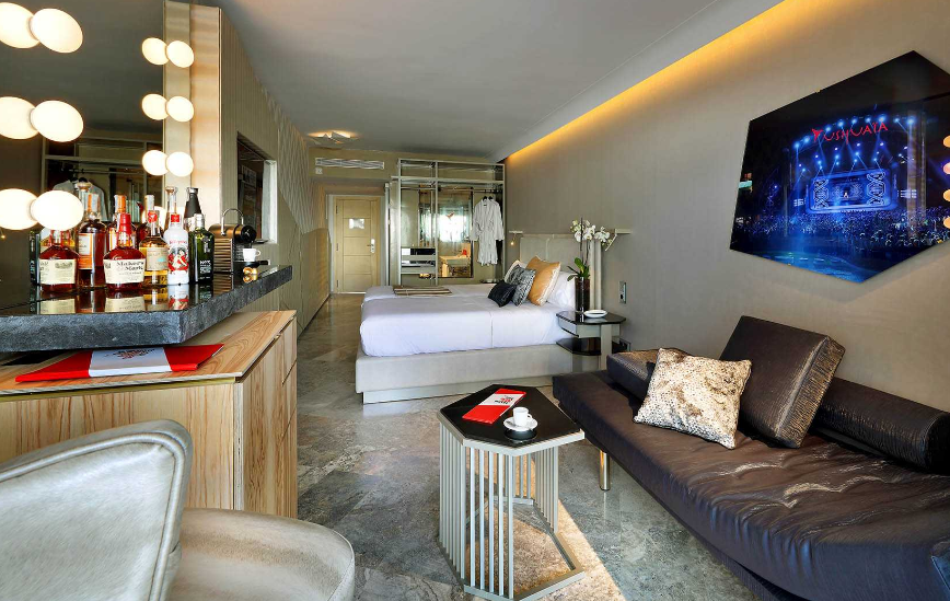 Погрузиться в головокружительную атмосферу Ибицы не выходя из отеля? Легко! Достаточно просто забронировать номер в Ushuaia Ibiza Beach Hotel. Гостей ждут показы мод, грандиозные вечеринки у бассейна и зажигательные концерты на собственной сцене отеля. За выступлениями можно наблюдать со своего балкона – для этого достаточно выбрать номер с видом на сцену.
