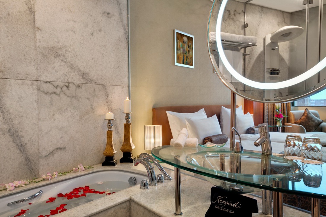 Presidential Suite: 230 м2, номер на 20 этаже. В номере 2 спальни, гостиная, зона отдыха, столовая, кабинет, кухня, бар, сауна, ванная комната, джакузи.