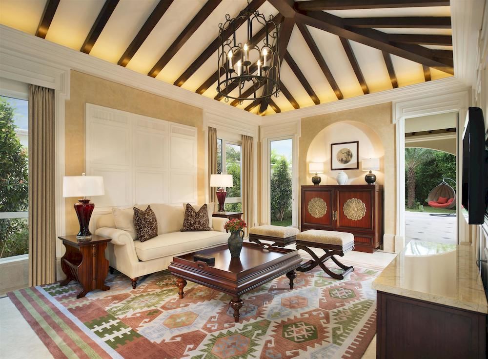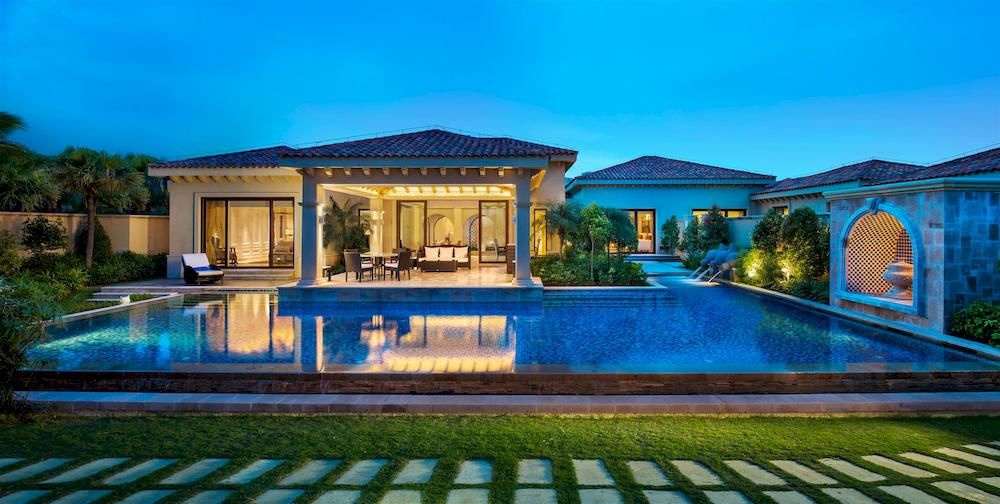 Beachfront Villa: 728 м2. Шикарная вилла с видом на море, расположена у пляжа, состоит из 3 спален (две с кроватями king-size и одна с двумя кроватями twin) с ванными комнатами (в главной спальне – ванная комната с джакузи и душем и гардеробная), просторной гостиной, столовой на 10 персон, кухни, гостевой ванной комнаты с душем, частного сада с 2 бассейнами (90 м2 и 150 м2), душем на открытом воздухе, большой зоной отдыха и выходом на пляж. Гостям виллы предоставляются услуги дворецкого.