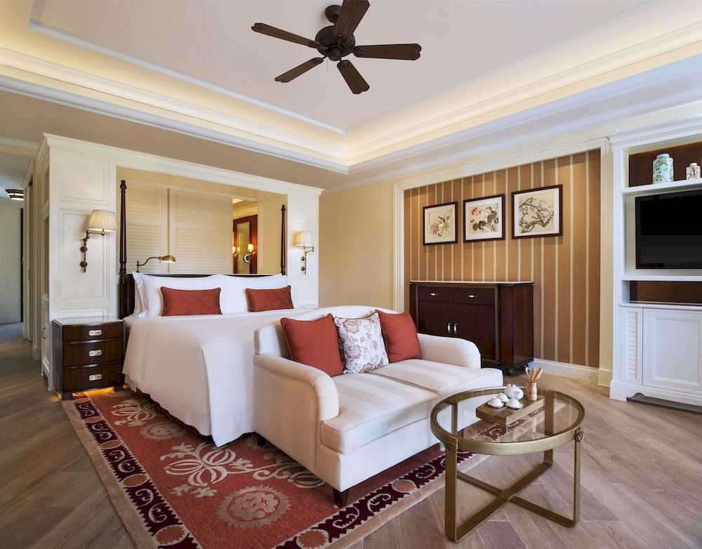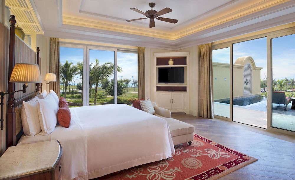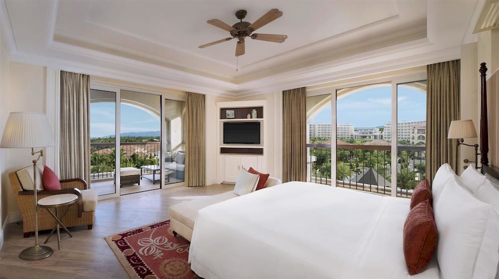 В отеле 160 номеров различных категорий, включая Guest Room, Suite и Villa. Просторные комфортабельные номера сочетают элегантный европейский дизайн и аутентичные китайские элементы декора, а с балконов открывается прекрасный вид на Южно-Китайское море, бассейны и пышные сады отеля.