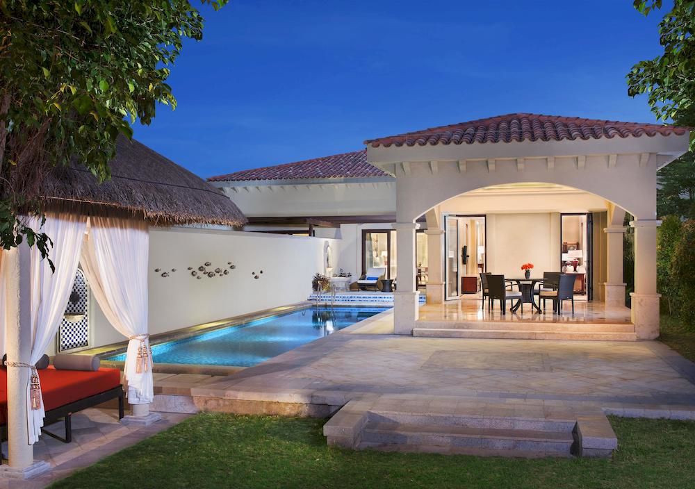 Presidential Villa: 667 м2. Роскошная вилла с видом на море, расположена у пляжа, состоит из 3 спален (две с кроватями king-size и одна с двумя кроватями twin) с ванными комнатами (в главной спальне – ванная комната с овальной ванной и душем и гардеробная, две другие ванные комнаты – с душем), просторной гостиной, столовой на 10 персон, кухни, гостевой ванной комнаты с душем, частного сада с бассейном (190 м2), джакузи, душем на открытом воздухе, большой зоной отдыха и выходом на пляж. Гостям виллы предоставляются услуги дворецкого.