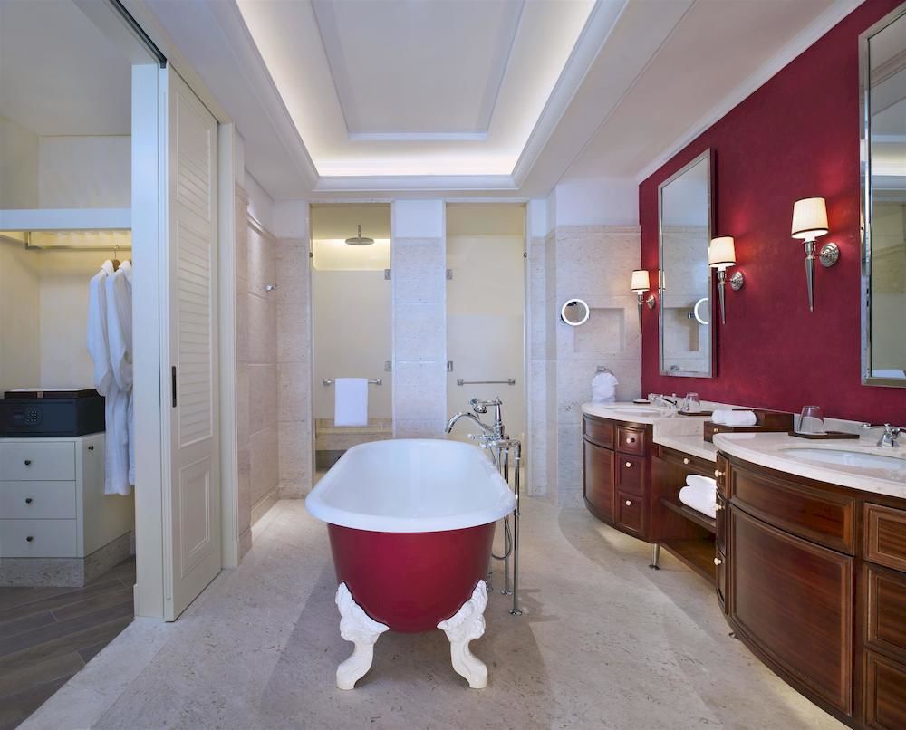 Luxury Suite: 130 м2. Состоит из спальни с кроватью king-size, гостиной с обеденной зоной на 4 персоны и зоной отдыха с диваном, ванной комнаты, дополнительной туалетной комнаты, большого балкона с зоной отдыха и видом на море и сады или бассейн. В некоторых номерах имеется выход к бассейну.