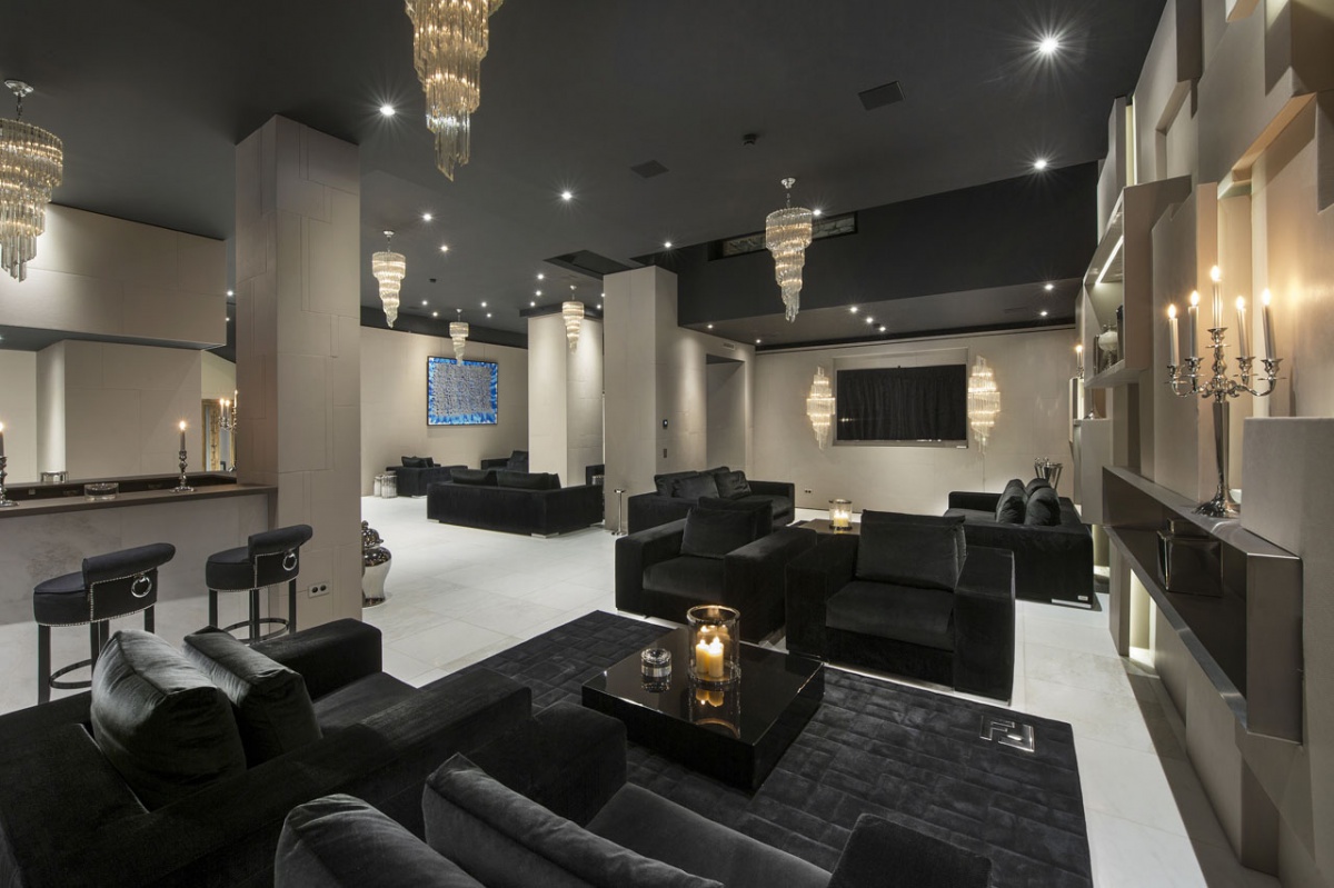 -2 этаж: банкетный зал с баром, зоной отдыха и винным погребом, детская игровая комната, кинотеатр, тренажерный зал, 2 массажные комнаты, салон-красоты, лыжная комната с лифтом к главному входу.