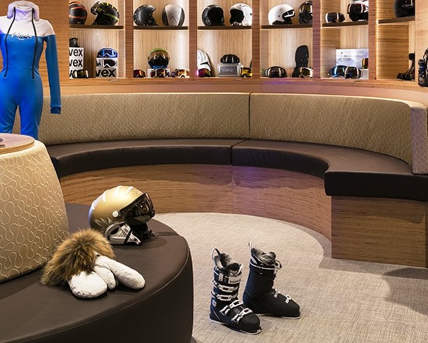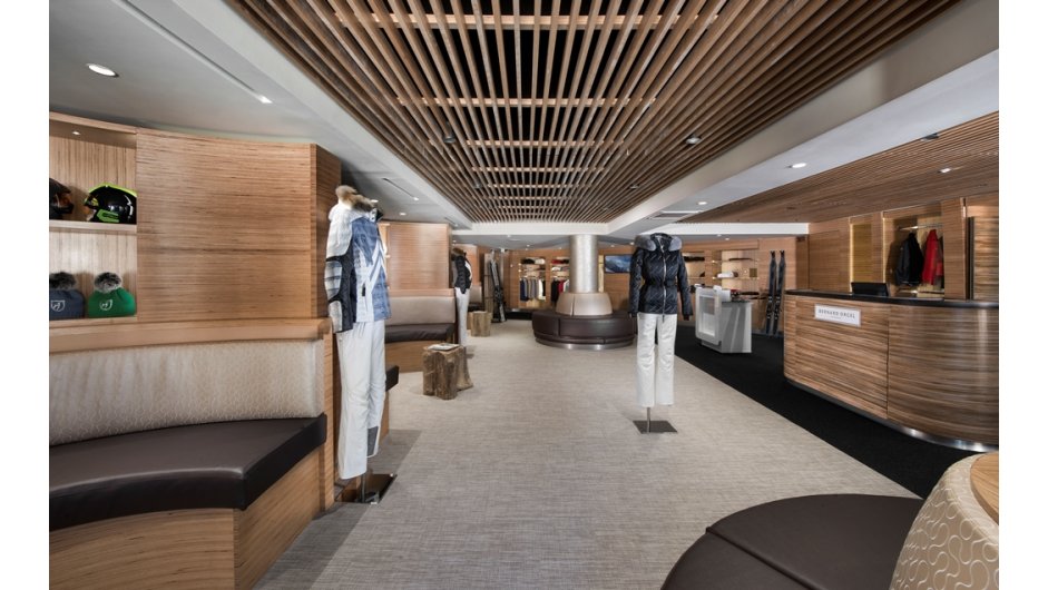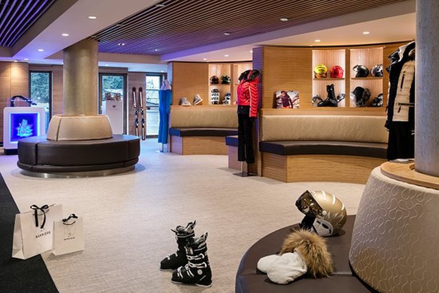 В роскошном магазине Maison Orcel, который разместился на площади 240 кв. м гости курорта могут приобрести различное оборудование и аксессуары для занятий зимними видами спорта, а также брендовую одежду.