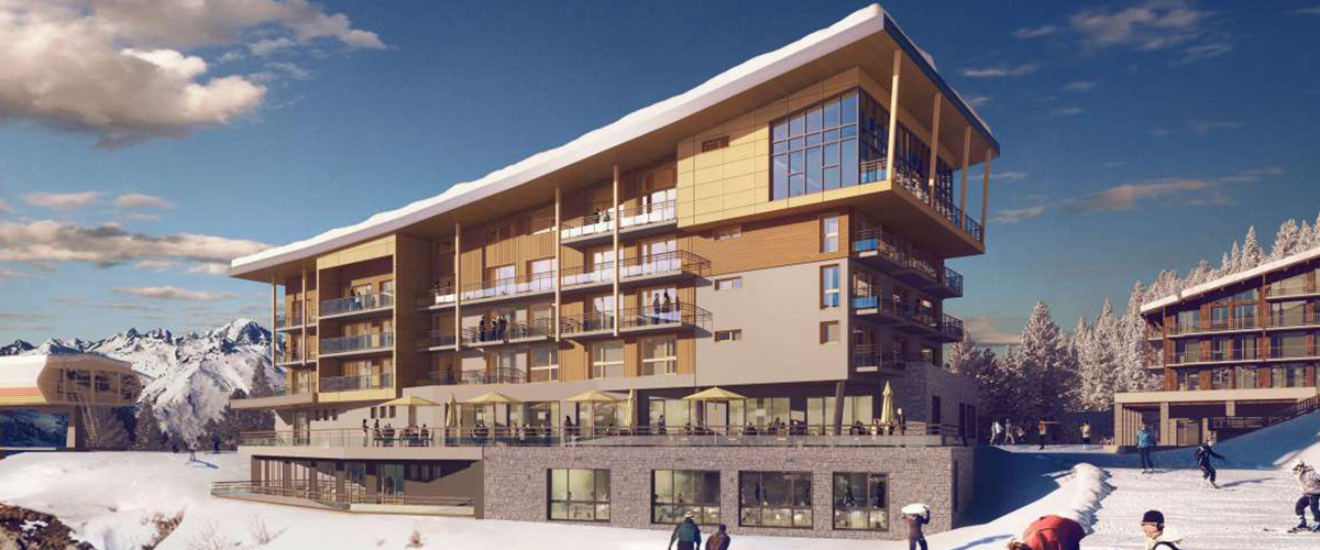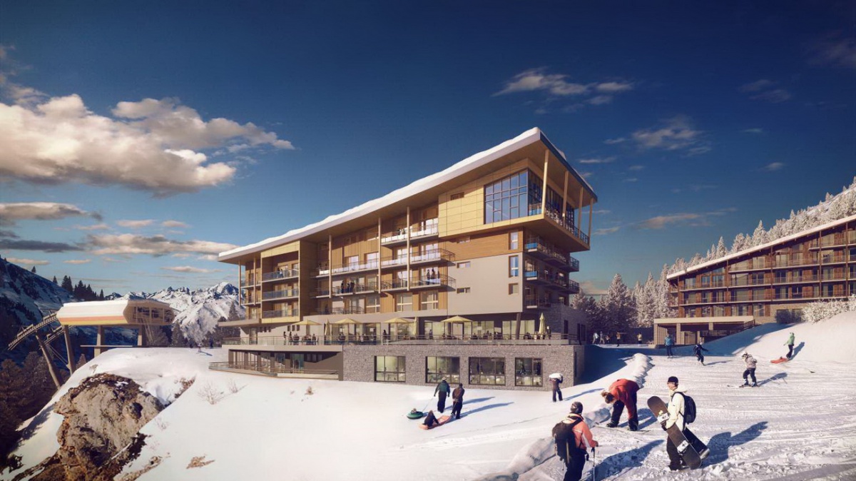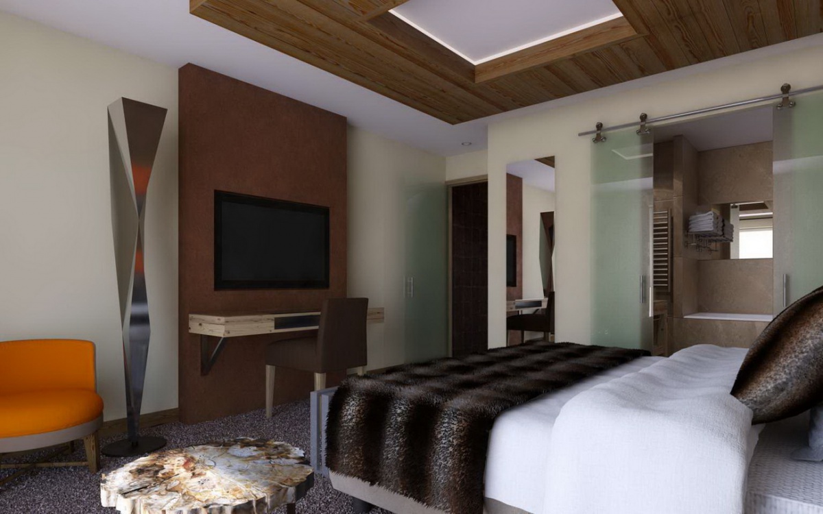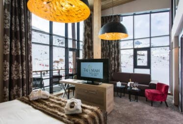 Двухуровневый люкс площадью 45 кв. м. На первом этаже находится двуспальная кровать (или 2 односпальные кровати по запросу), ванная комната с ванной и отдельным душем, а на нижнем этаже — гостиная с диваном, раскладывающимся в кровать для 2 человек. Просторный балкон с панорамным видом на склоны; южная экспозиция.