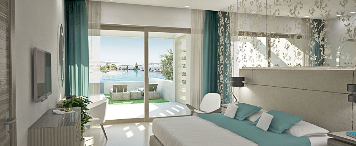 В отеле работает 136 номеров различных категорий (24 номера Junior Suites, 56 номеров Deluxe Junior Suites & Panorama Junior Suites, 56 номеров Double Rooms & Family Rooms) с потрясающими видами на Эгейское море и живописные сады отеля. Интерьеры выдержаны в светлых оттенках моря и песка, окружая ваш отдых спокойствием и уютом. В номерах предусмотрены всевозможные удобства и сервисы, которые порадуют даже опытных путешественников.