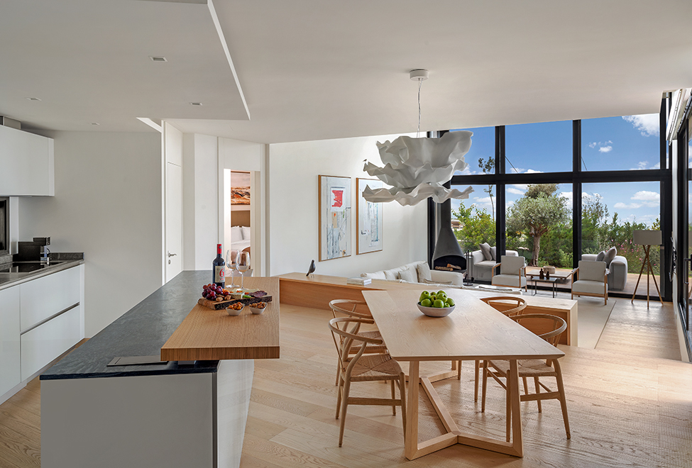 Площадь шикарной резиденции может быть от 175 до 185 м2. Интерьер выполнен в светлых спокойных тонах с использованием натуральных отделочных материалов и оригинальных элементов декора. Вилла располагает тремя спальнями и прилегающими к ним ванными комнатами, большой гостиной с зоной для развлечений и камином, обеденной зоной с полностью меблированной кухней, террасой с обеденным столом, двумя диванами и креслами. Максимальное размещение 6 человек.