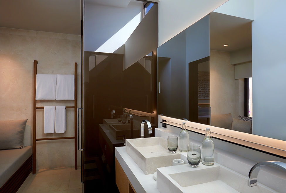 Площадь этой шикарной виллы может варьироваться от 41 до 46 м2 (плюс бассейн 12 м2). Апартаменты этой категории располагаются вдали от главного здания отеля и скрыты от любопытных глаз окружающих. Из больших панорамных окон гости смогут насладиться неповторимым видом на зелень окружающих садов или на собственную террасу с шезлонгами, которая выходит к очаровательному бассейну. С помощью IPad можно контролировать яркость освещения в комнате, температуру воздуха и громкость звука телевизора.