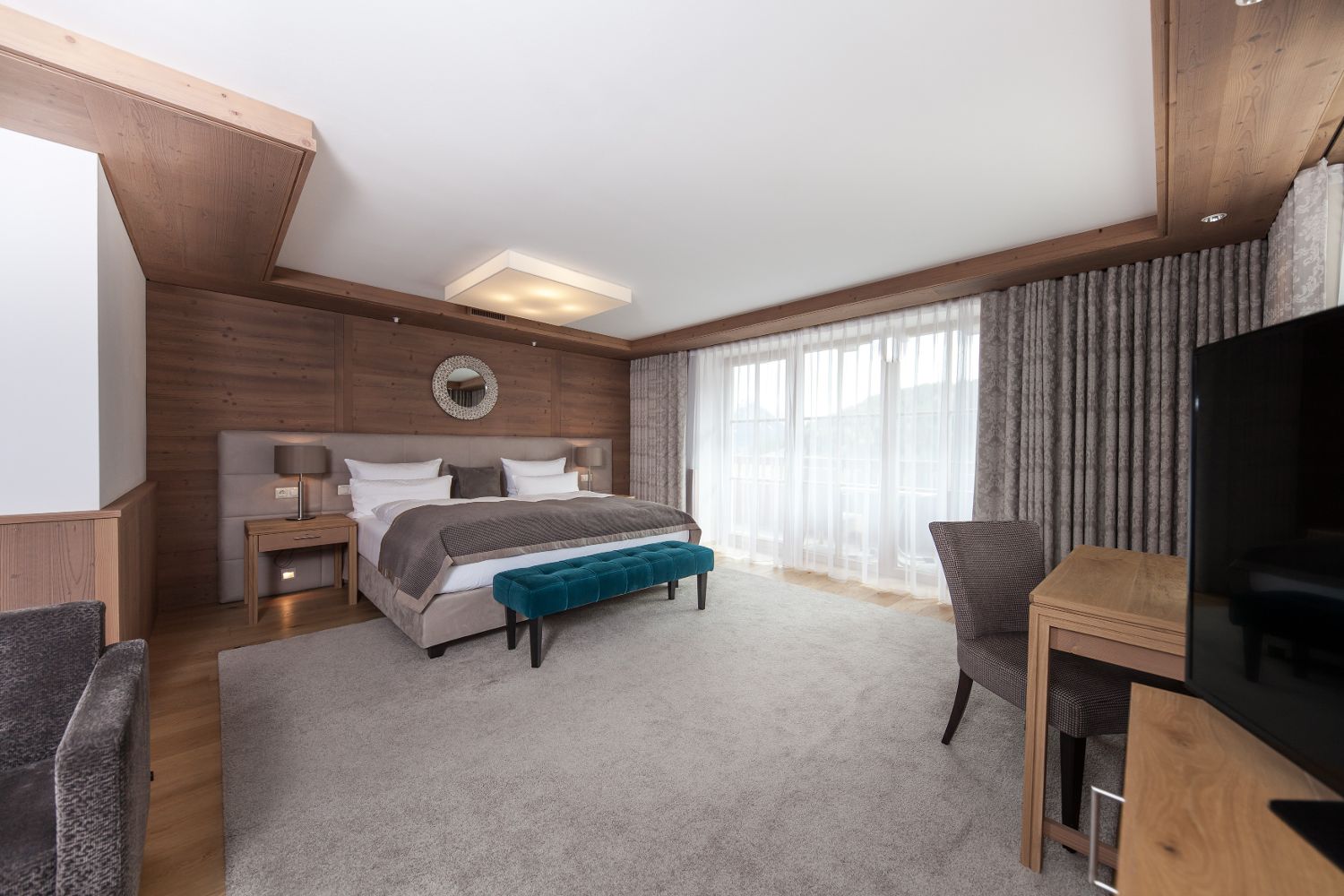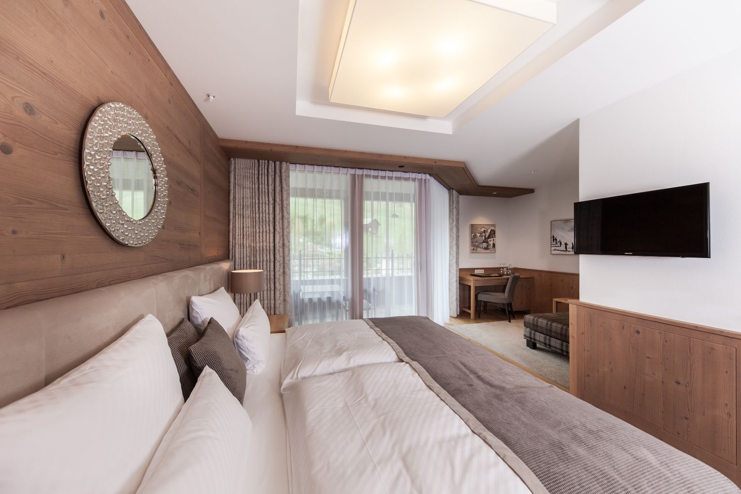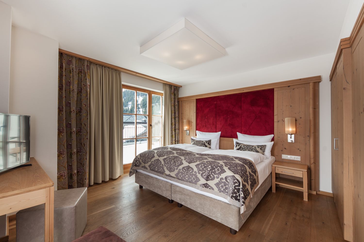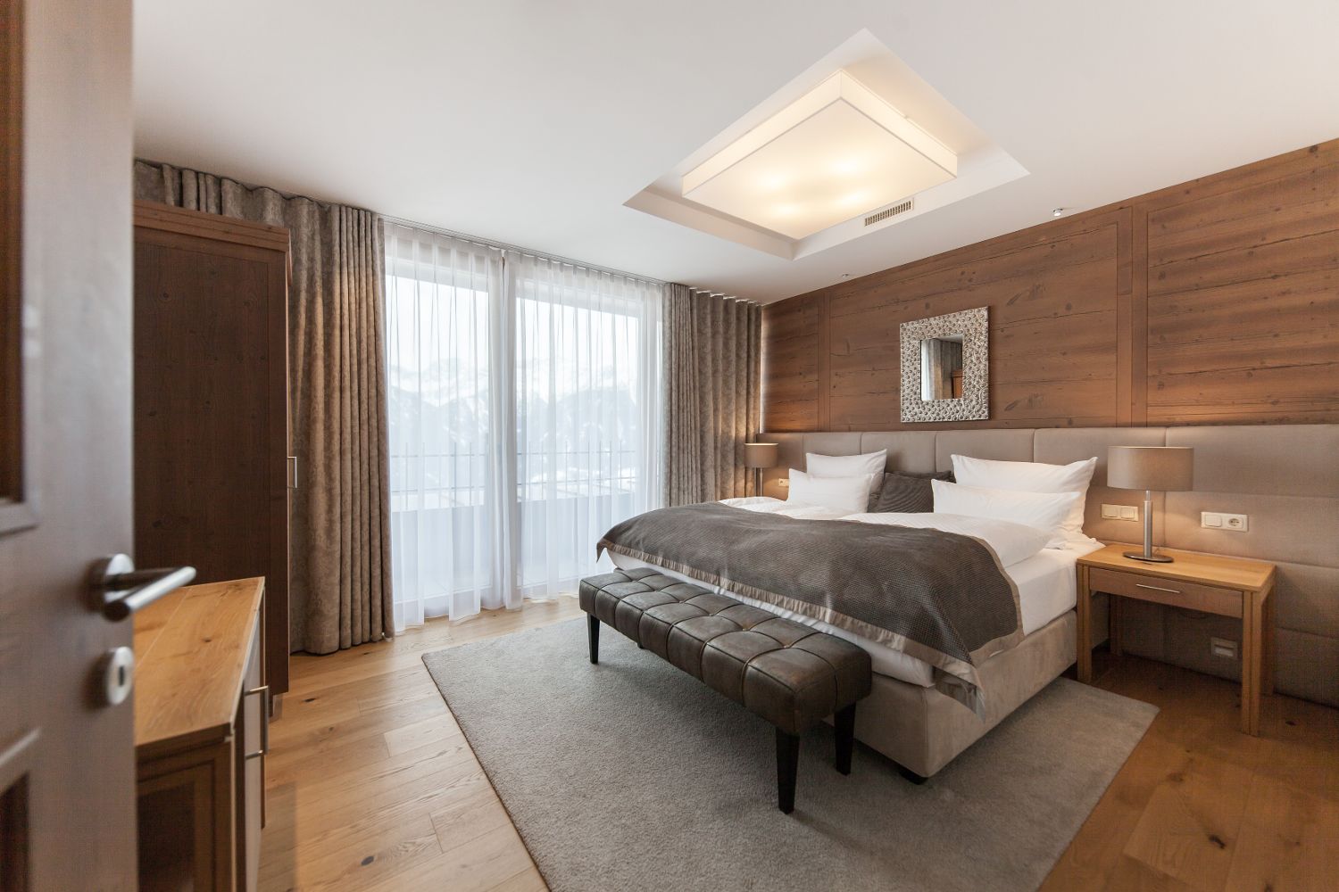 Для удобного размещения гостей, в отеле предусмотрено 135 элегантных номеров различных категорий, выполненных в современном альпийском стиле. В каждом номере есть беспроводной интернет, мини-бар, сейф, телевизор и телефон.
