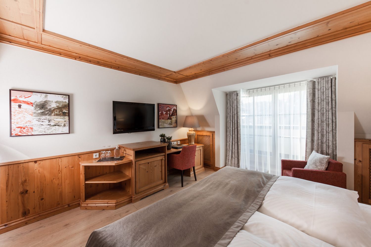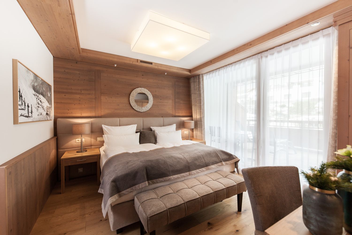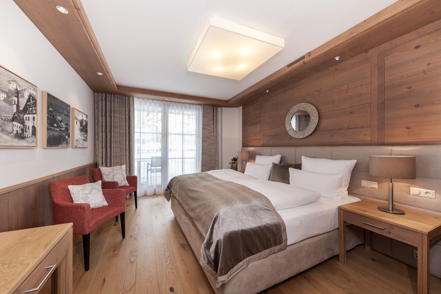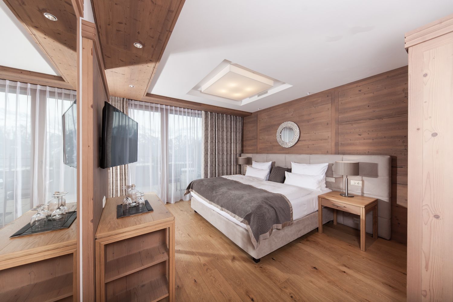 Для удобного размещения гостей, в отеле предусмотрено 135 элегантных номеров различных категорий, выполненных в современном альпийском стиле. В каждом номере есть беспроводной интернет, мини-бар, сейф, телевизор и телефон.