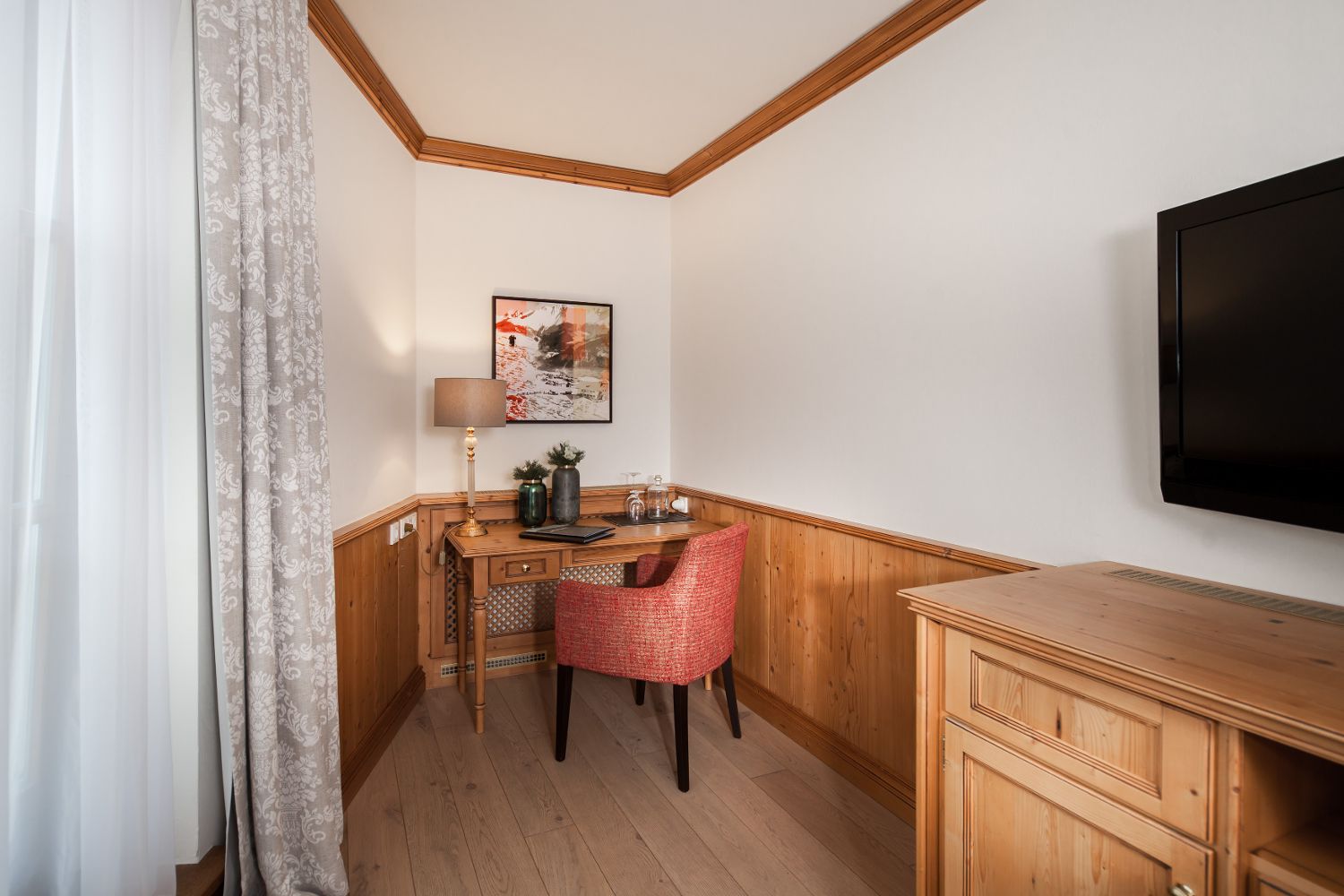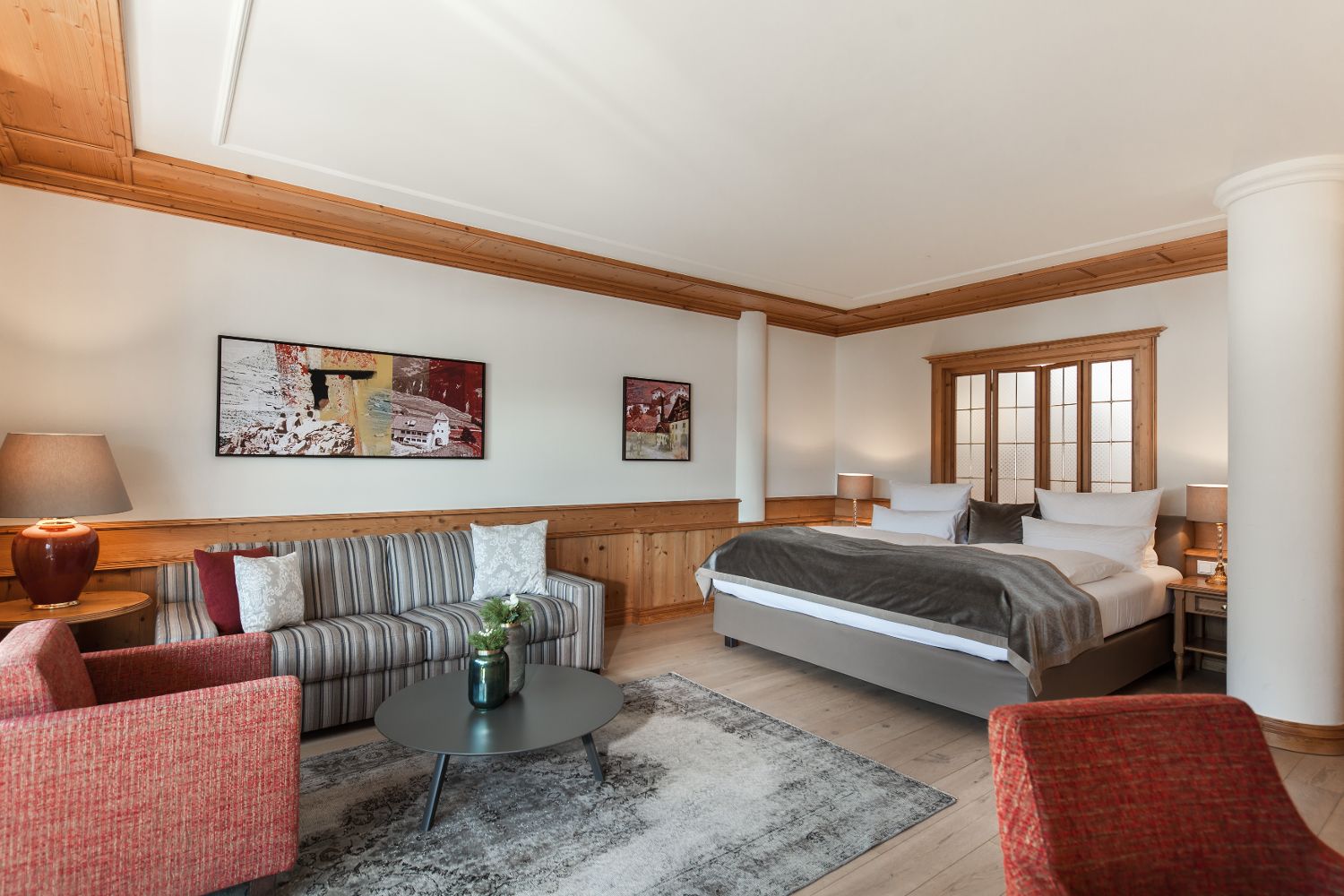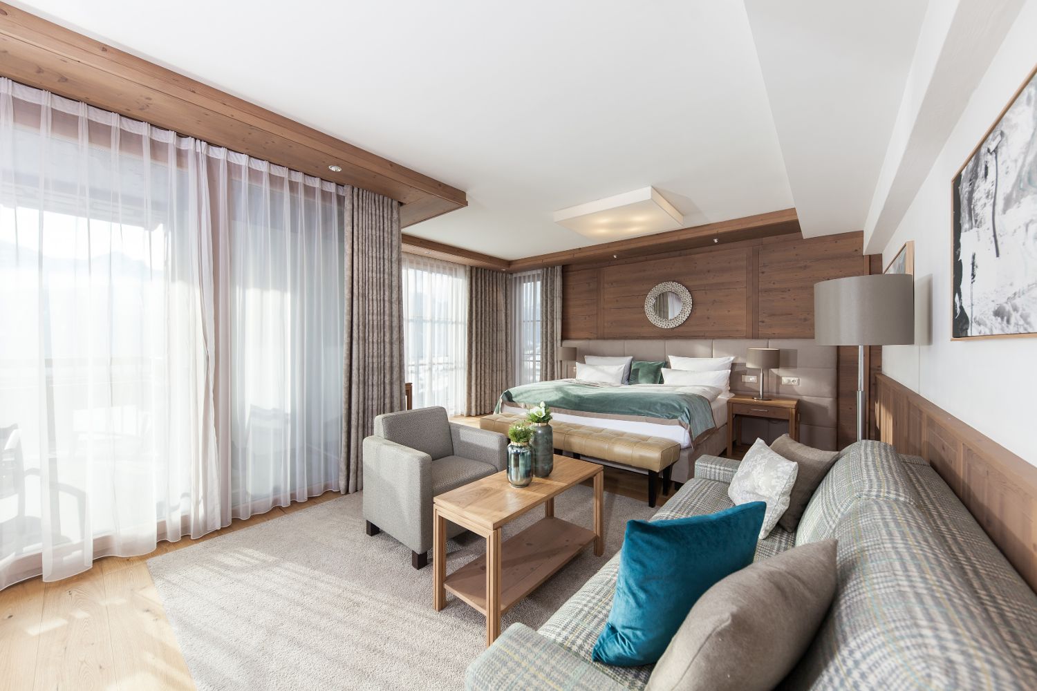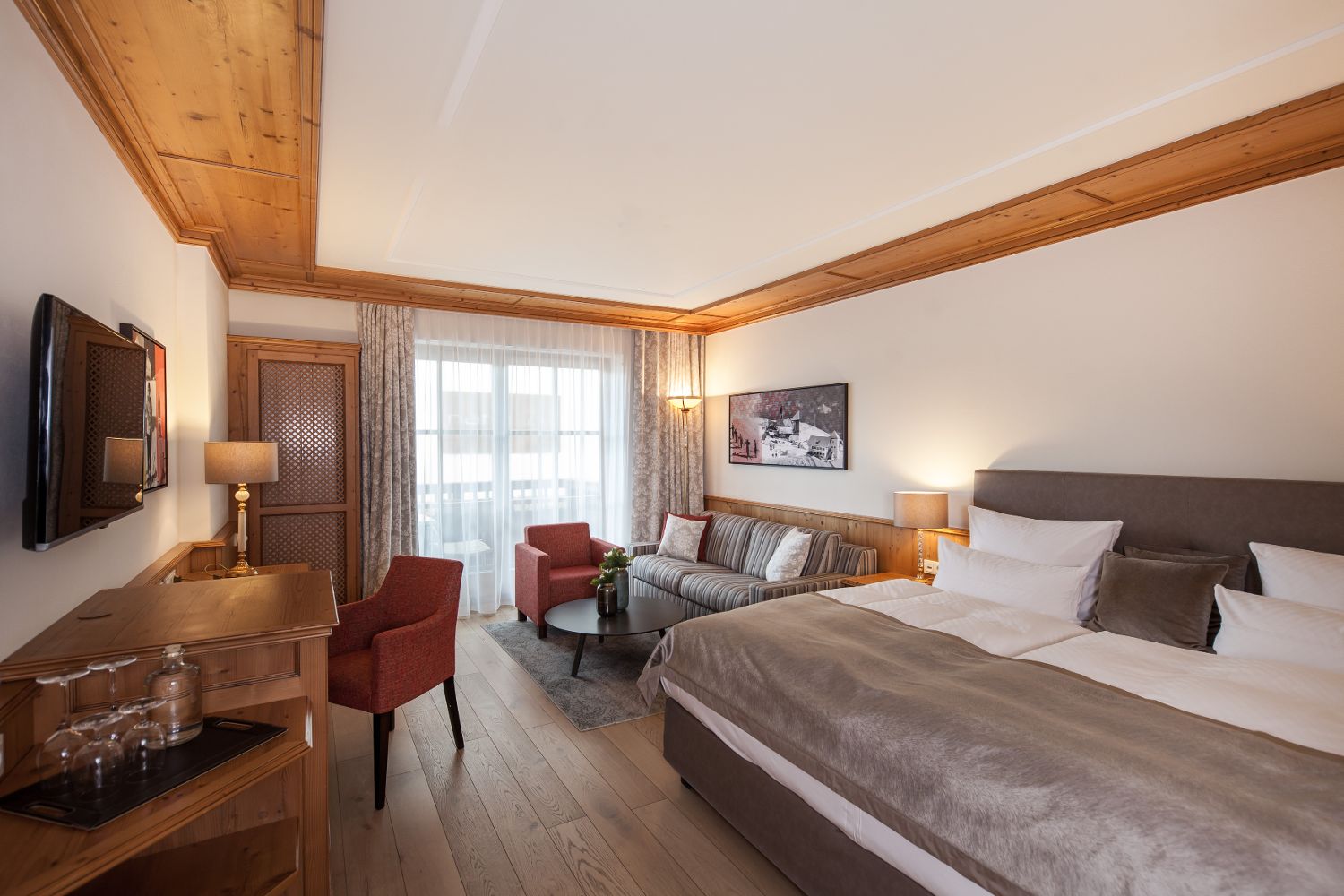 Для удобного размещения гостей, в отеле предусмотрено 135 элегантных номеров различных категорий, выполненных в современном альпийском стиле. В каждом номере есть беспроводной интернет, мини-бар, сейф, телевизор и телефон.