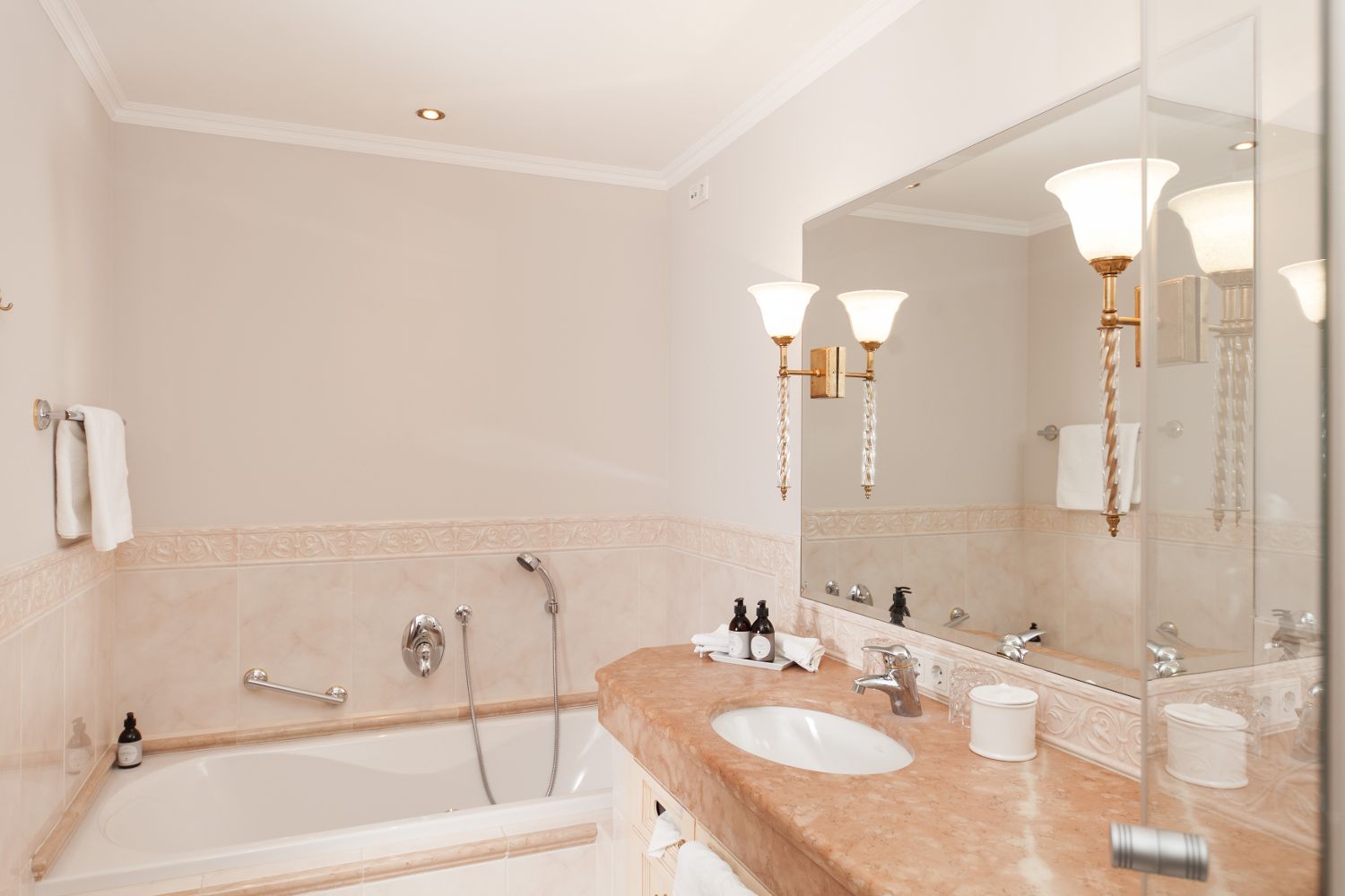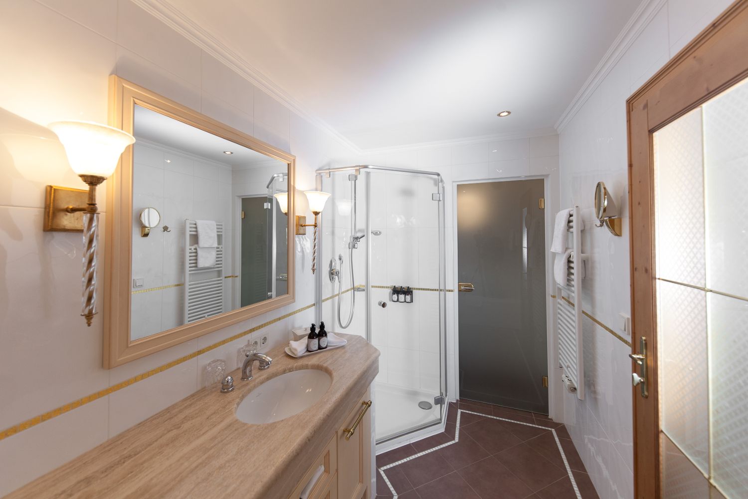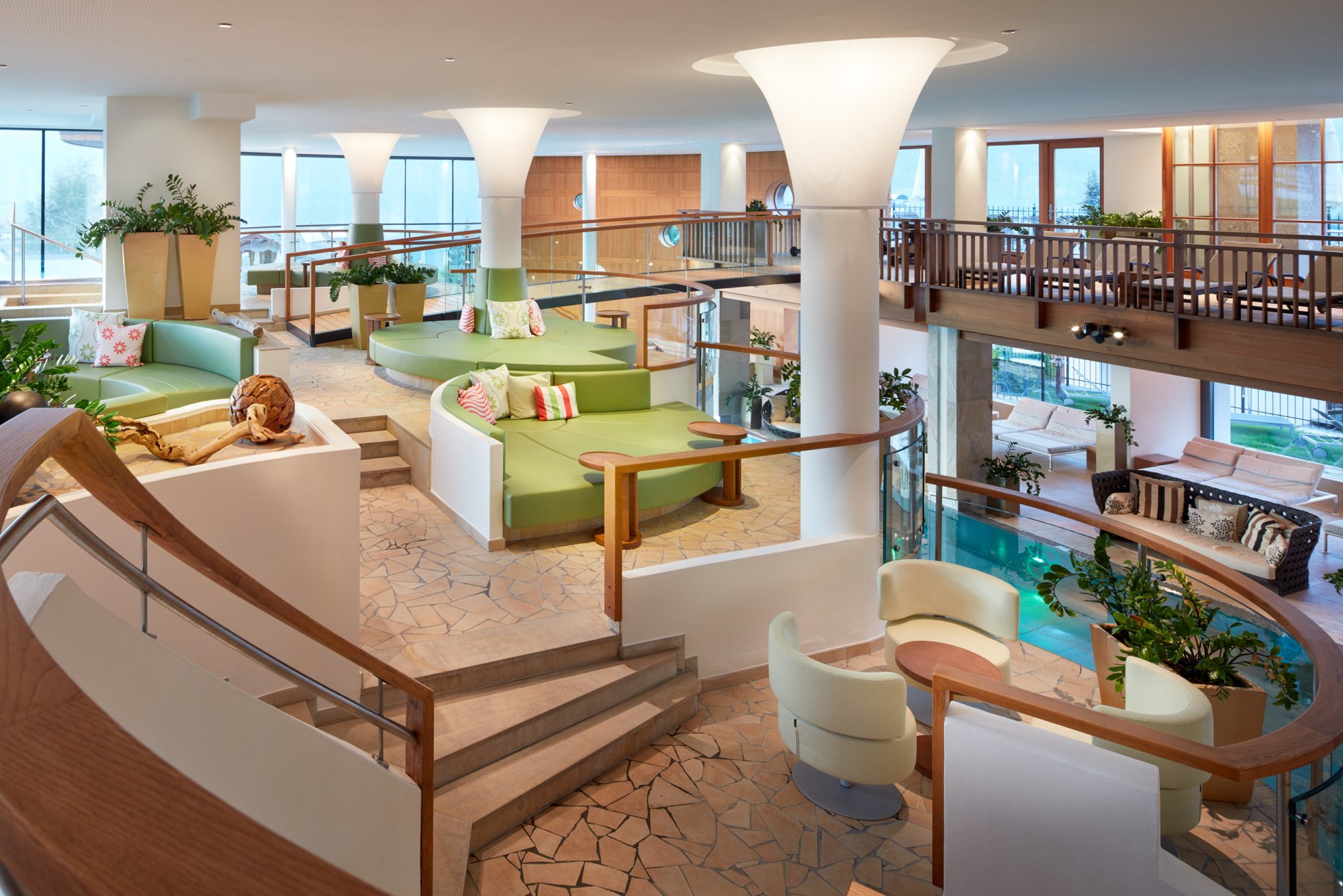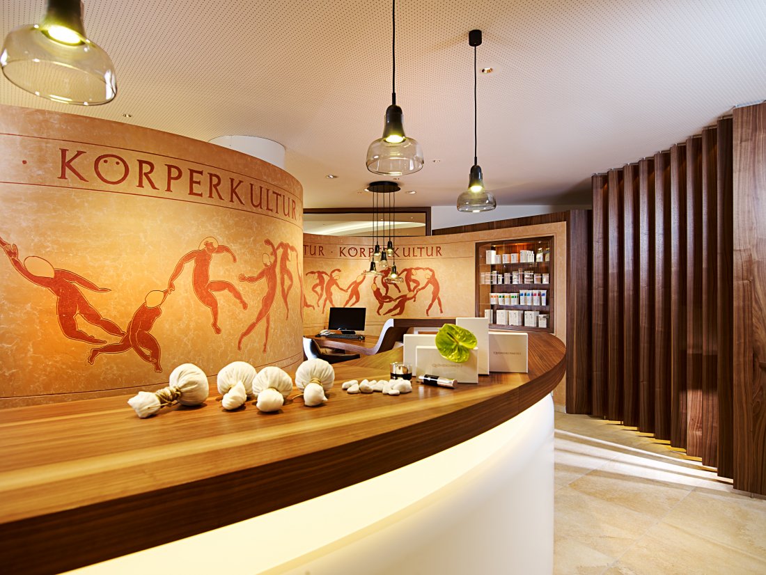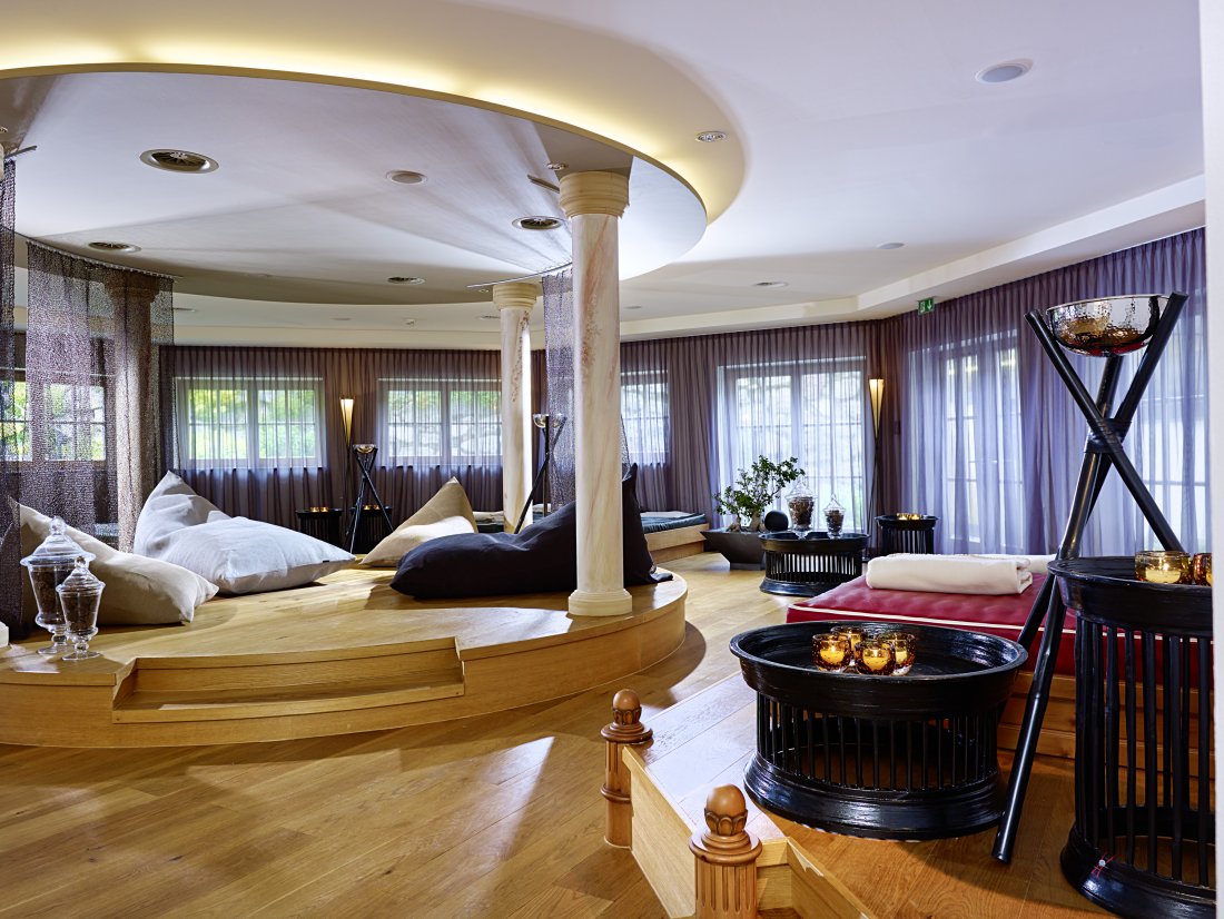 В отеле, на площади 5000 кв.м. расположился удивительный СПА-центр Schloss Spa, изюминкой которого является просторная финская панорамная сауна. Кроме этого, гости могут воспользоваться парной для ароматерапии, соляной баней, инфракрасной сауной, бассейном Кнайпа, хаммамом, частными СПА-люксами, джакузи и крытым бассейном для ныряния. В распоряжении гостей 14 кабинетов для спа-процедур Alpine.
