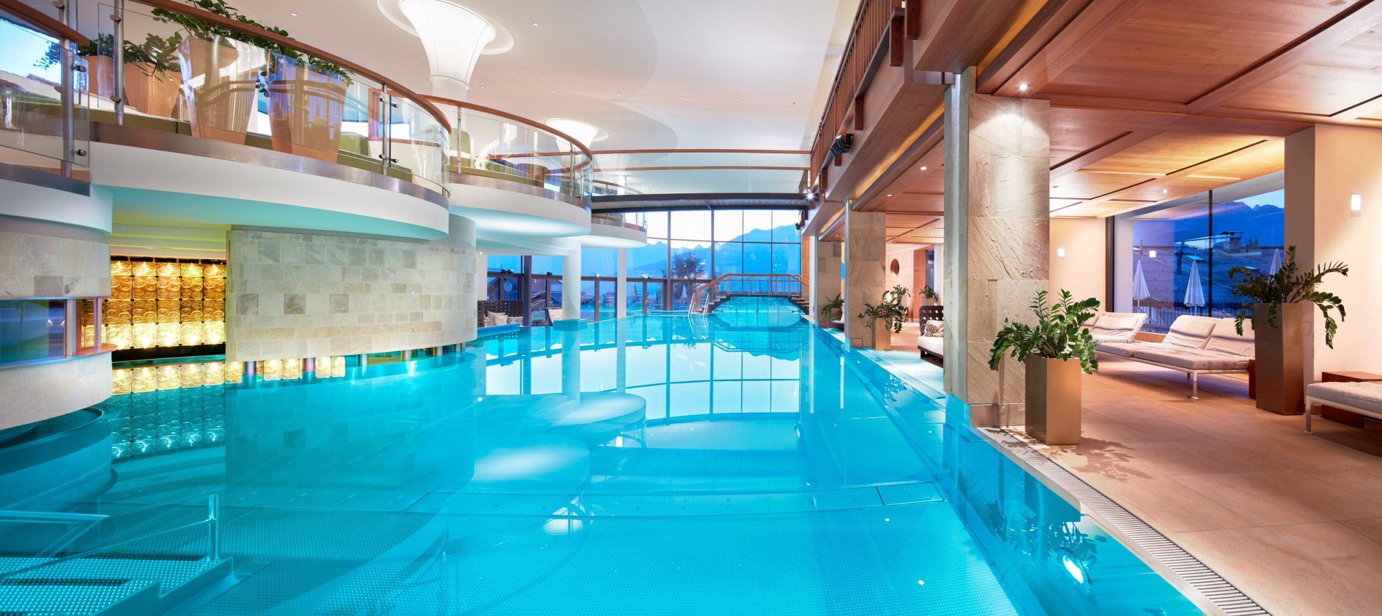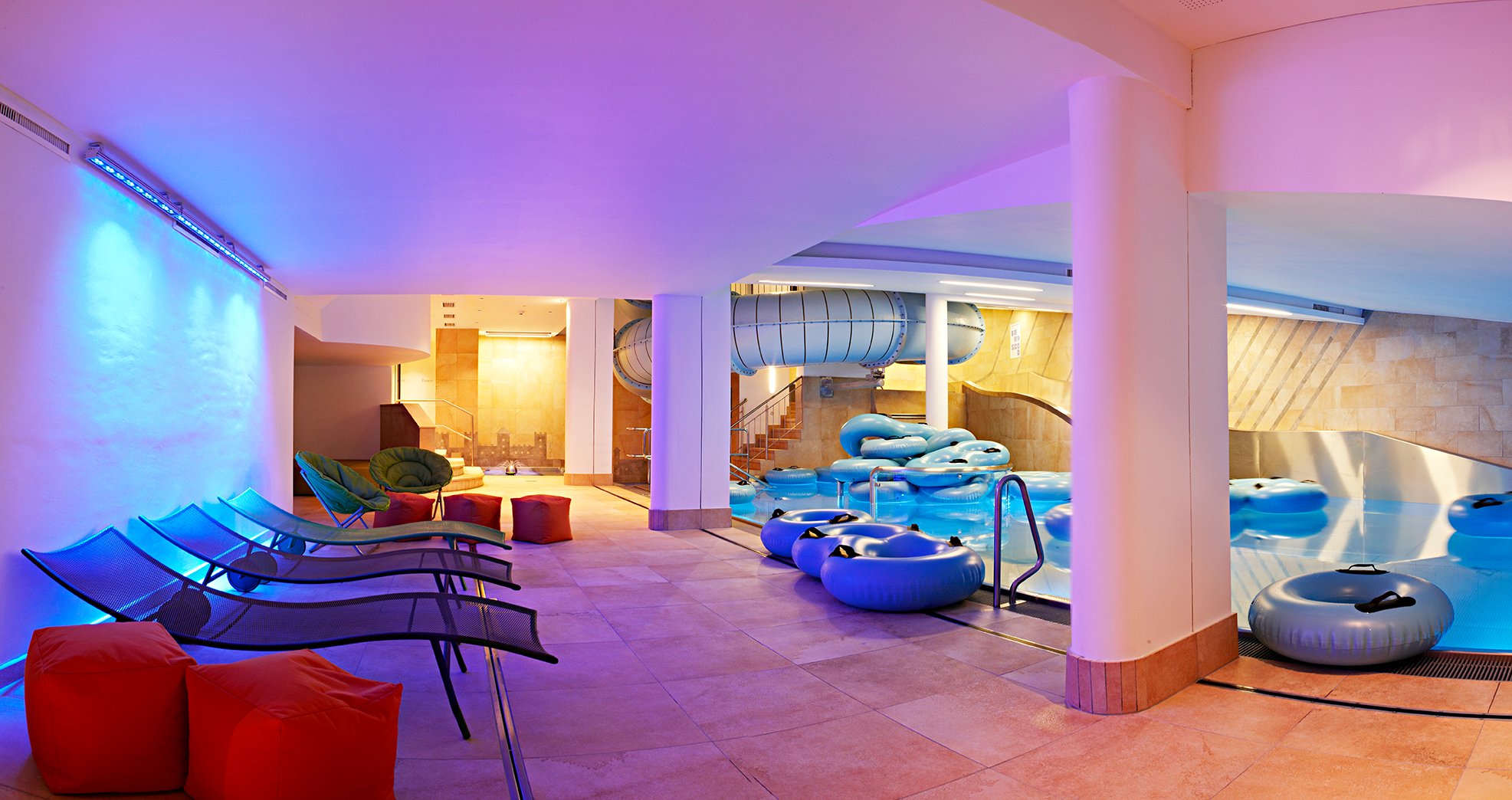 Кроме того, в отеле находится великолепный и просторный крытый бассейн Aqua Monte Waterworld с панорамным видом и площадью 250 кв.м.