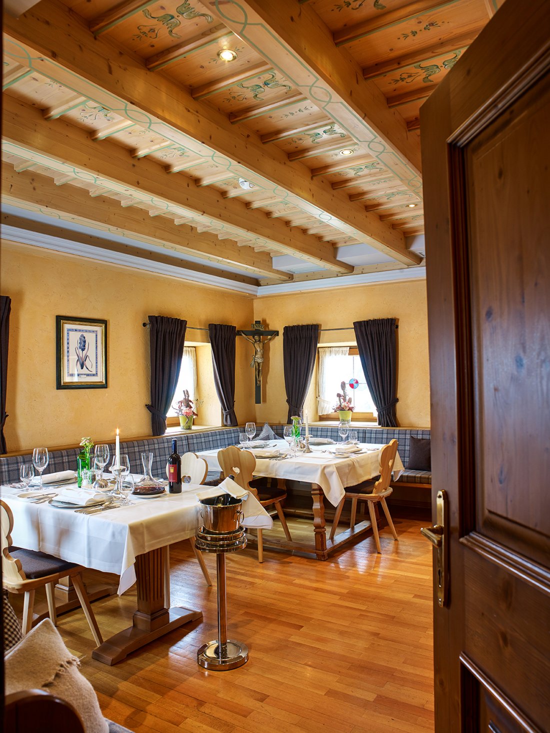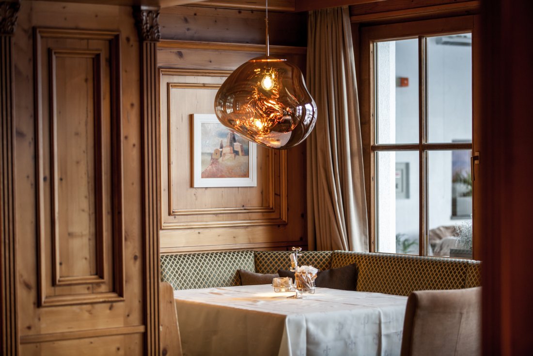 Ресторан отеля Schlosshotel Fiss предлагает своим посетителям изысканные блюда из меню австрийской и интернациональной кухни, а также эксклюзивные вина.
