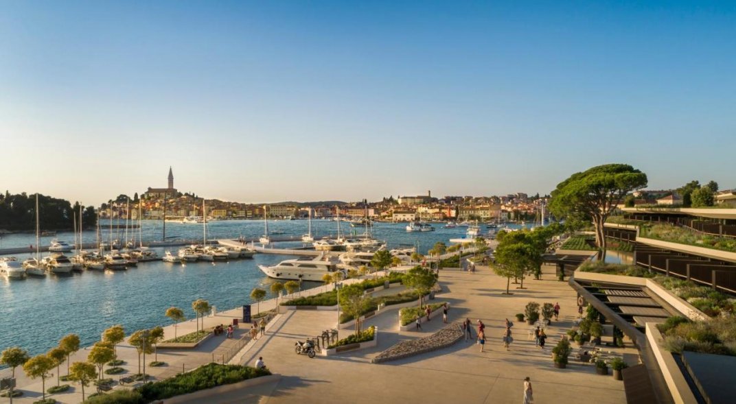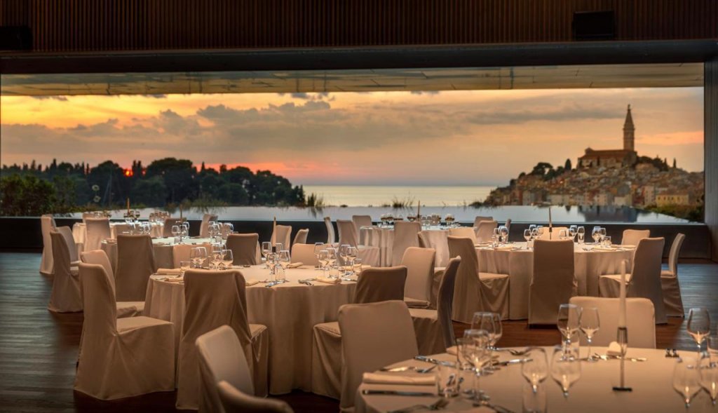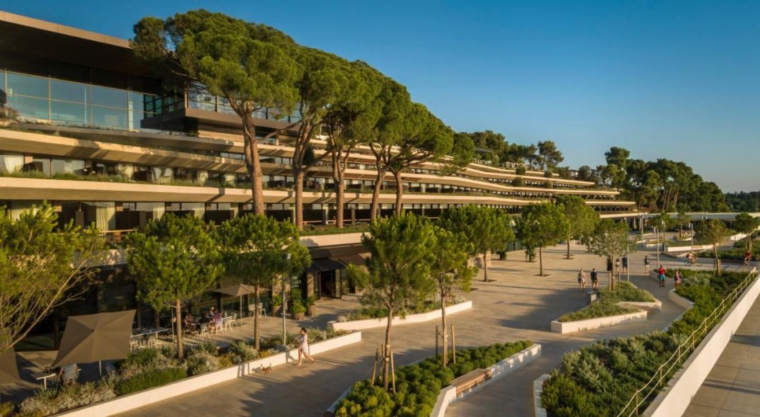 Этот шикарный современный отель с видом живописный парк, напоенный ароматом сосен и лаванды, и Старый город с возвышающейся над его красночерепичными крышами колокольней церкви Св. Ефимии, помимо завораживающего вида и прекрасного расположения рядом с пляжем, гаванью и центром Ровиня, предлагает своим гостям разнообразие первоклассных услуг: стильные комфортабельные номера с балконами, рестораны и бары с изысканной кухней, роскошный комплекс с тремя бассейнами, Spa и фитнес-центрами, детский клуб, спорт и развлечения на любой вкус, а также бутики, конференц-залы и многое другое.