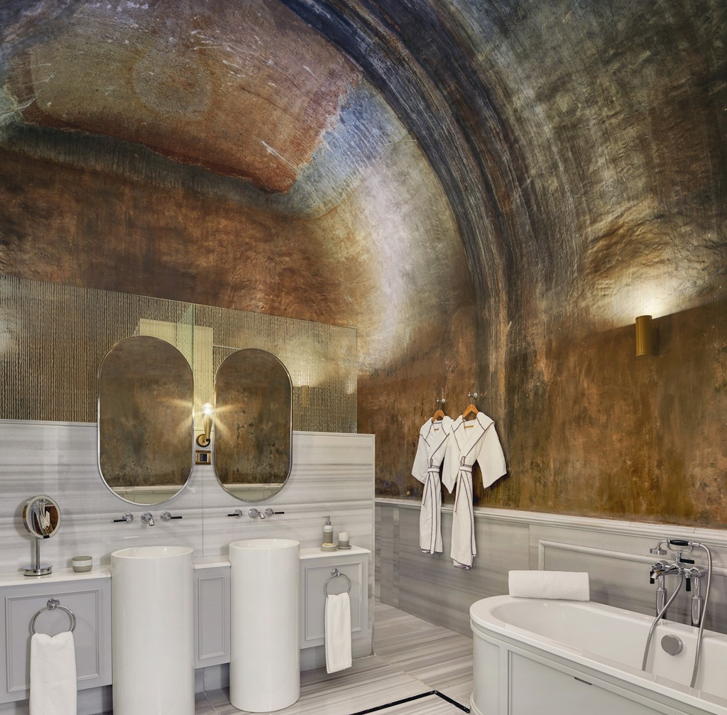 Номер с элегантным дизайном площадью 30 - 45 кв. м. В номере: кровать размера «king-size», письменный стол, диван, отделанная мрамором ванная комната с двойным туалетным столиком, отдельно стоящей ванной и душевой кабиной. Вид во двор. Максимальное количество гостей – 3 человека.