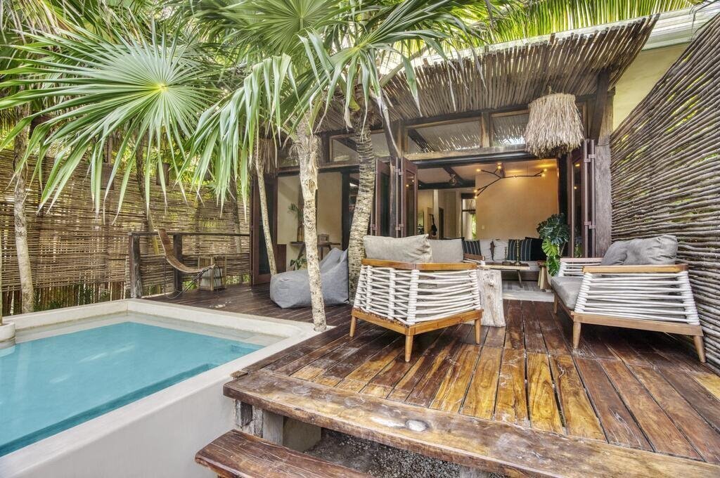 Aldea Canzul - это роскошный отель на пляже Тулума, где мексиканская архитектура сочетается с элементами теплых деревенских джунглей. Состоит из трех уникальных домов, окруженных тропическими садами, всего в паре шагов босиком от белого песка и бирюзового Карибского моря.