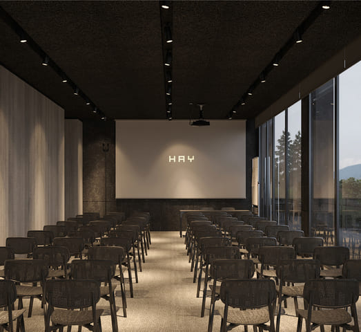 Отель HAY предлагает своим гостям 40 номеров, являющихся воплощением инновационных решений.  В каждом номере имеются: интерактивное ТВ, Wi-Fi, система климат-контроля, мини-бар, сейф, просторная душевая с видом на горы, балкон, фен, эксклюзивная косметика, двухспальная кровать, халат и тапочки, гипоаллергенные подушки и одеяла, а также ковровое покрытие на полу.