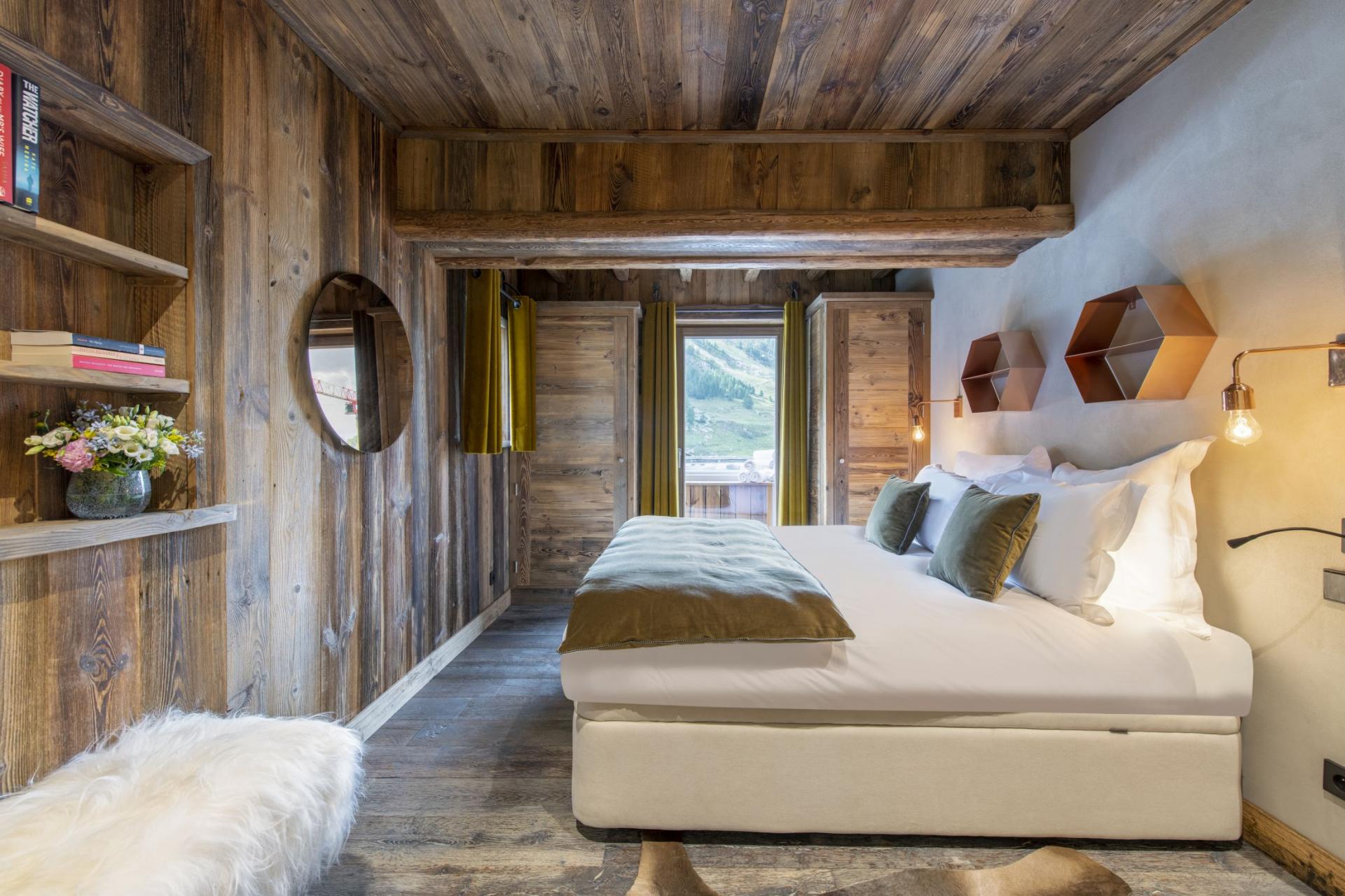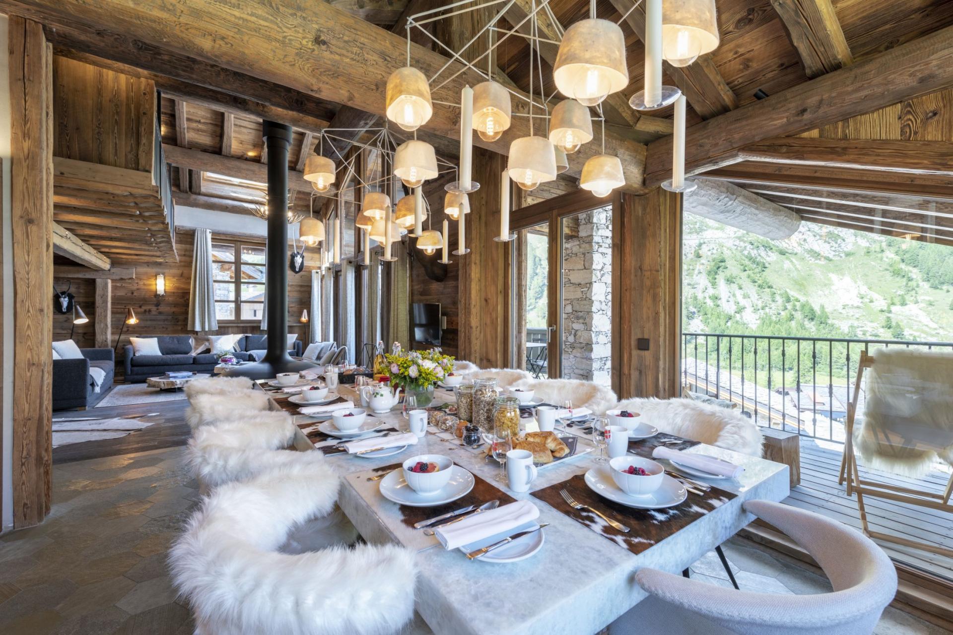 Из шале открывается потрясающий вид на самую известную трассу Валь-д'Изера — Ла-Фас. В шале общей площадью 380 м² могут разместиться до 14 человек в 6 спальнях.