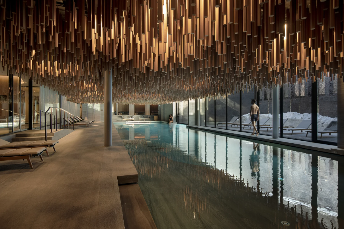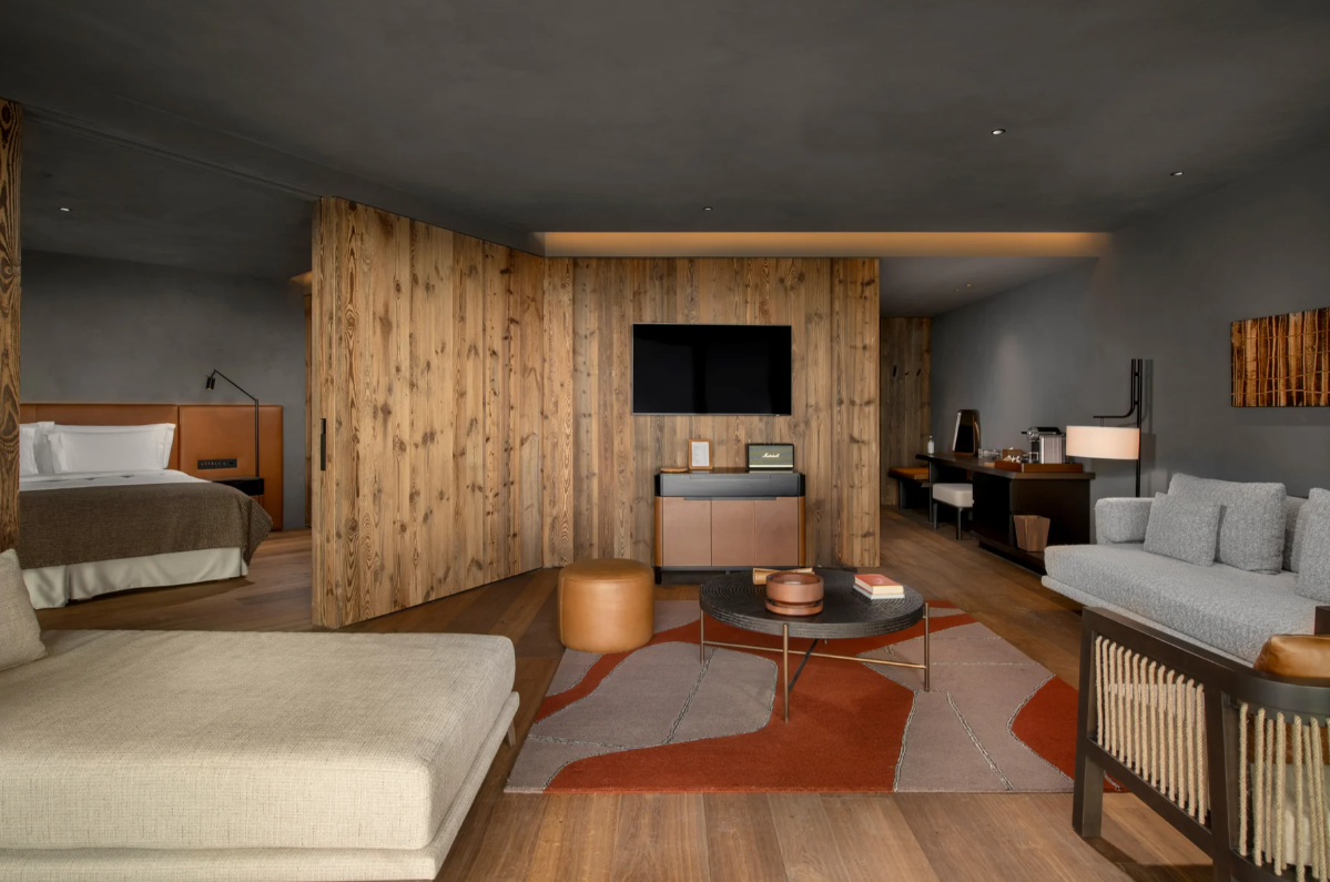 Six Senses Crans-Montana — это шале-стиль и альпийская роскошь, объединённые с концепцией wellness, спорта и удобства. Отель расположен прямо на горнолыжных склонах с прямым доступом «ski-in / ski-out», что делает его отличным выбором и для зимнего, и для летнего отдыха. Архитектура сочетает традиционные материалы (дерево, кварцит, сланец) с современным дизайном, большие панорамные окна, балконы и террасы с видом на горы; это даёт ощущение дома в горах, но с уровнем 5★