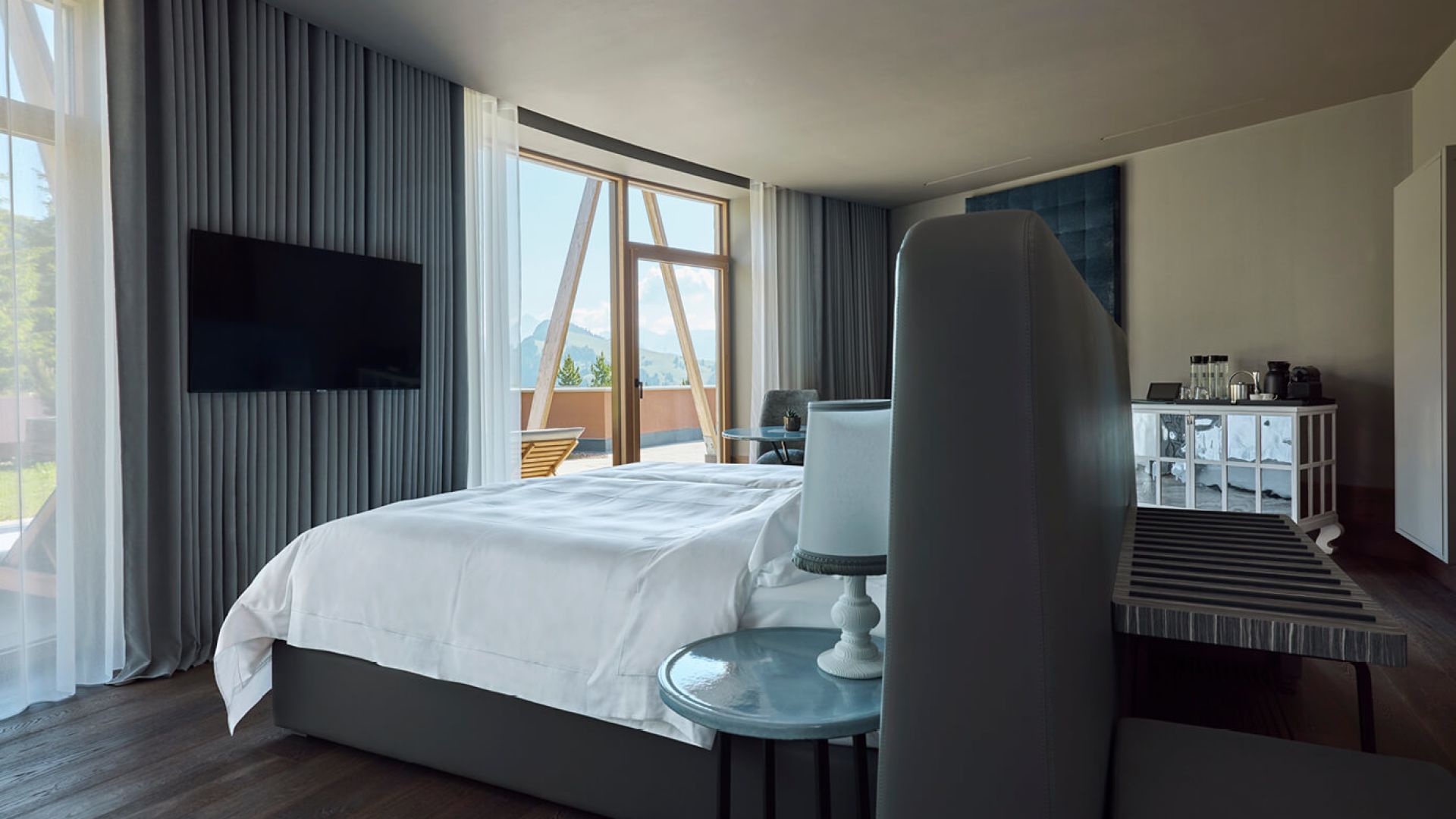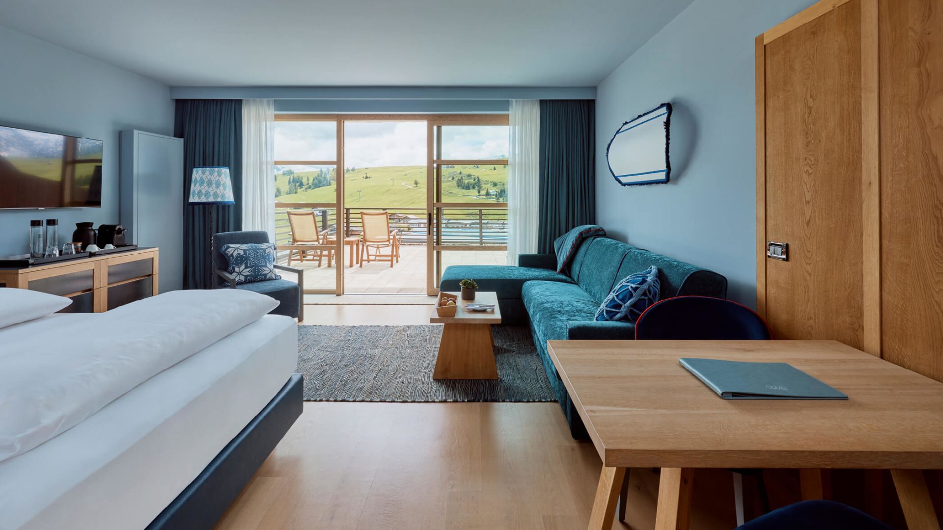 Номера и сьюты оформлены в современном стиле с элементами альпийской эстетики, мягкими натуральными материалами и панорамными окнами, открывающими виды на Доломиты и зелёные луга. Все номера оснащены удобствами высокого класса, включая балконы или террасы, мини-бар, кофемашину Nespresso, безопасный сейф и выделенные зоны отдыха. Некоторые категории предлагают дополнительные преимущества — камин, просторные гостиные зоны и отдельные обеденные пространства. Каждый номер ориентирован на комфорт и ощущение уюта, а общий дизайн подчёркивает связь с природой и лёгкость пребывания.