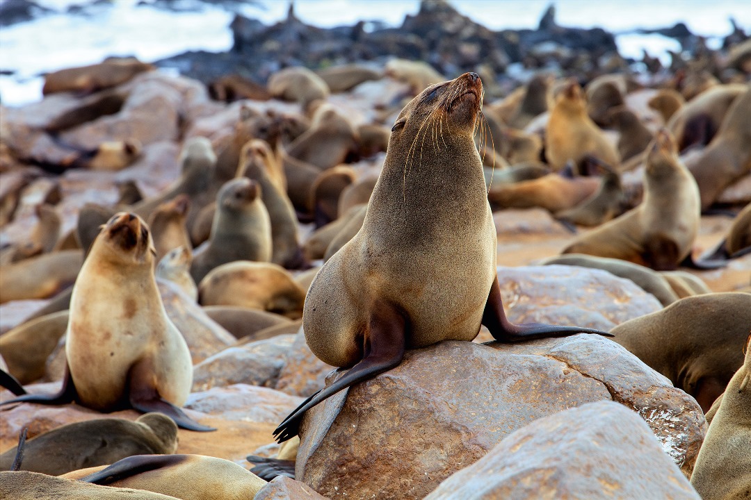 А еще на краю Намиба размножаются более полумиллиона морских котиков. Самое популярное их лежбище находится на мысе Кросс. Самцы выходят на берег первыми. Между “мужчинами” разгорается нешуточная борьба за место поближе к океану: там и прохладнее, и шансы встретить подругу выше. Самки на суше сразу приводят потомство, и уже на шестой день после родов снова готовы к спариванию.