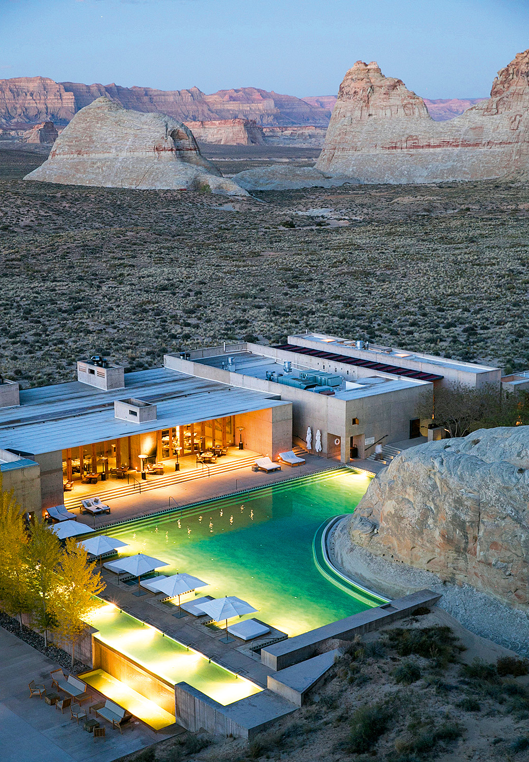 А если захотите увидеть дикую красоту бескрайних просторов, не отказывая себе в комфорте, остановите свой выбор на отеле Amangiri в штате Юта. Отель находится на территории Большого круга, где сосредоточено множество национальных парков: Большой каньон, Брайс-каньон, Национальный парк Зайон и Долина Монументов, где проживают индейцы навахо. Там вы сможете познакомиться с культурой и традициями навахо, заняться верховой ездой, подняться над скалами на воздушном шаре или вертолете, исследовать на лодке водохранилище Пауэлл или уединиться в новом кемпинге Sarika.