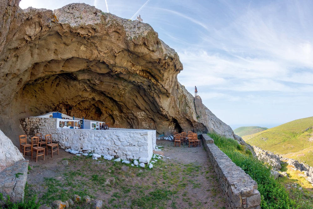 Удивительная церковь на Лемносе, Панагия Какавиотисса, находится в естественной нише в скале. И это единственная церковь без крыши в Греции. Кровлей ей служит скальный навес. Святыня датирована 1416 годом. Ранее в ней жили монахи. Сейчас она дает приют тем, кто хочется уединиться, помолиться и подумать о своем. Путь к церкви непрост: подъем в гористой местности и ступеньки, но он того стоит и из-за самой достопримечательности, и из-за красивых видов на море и остров.