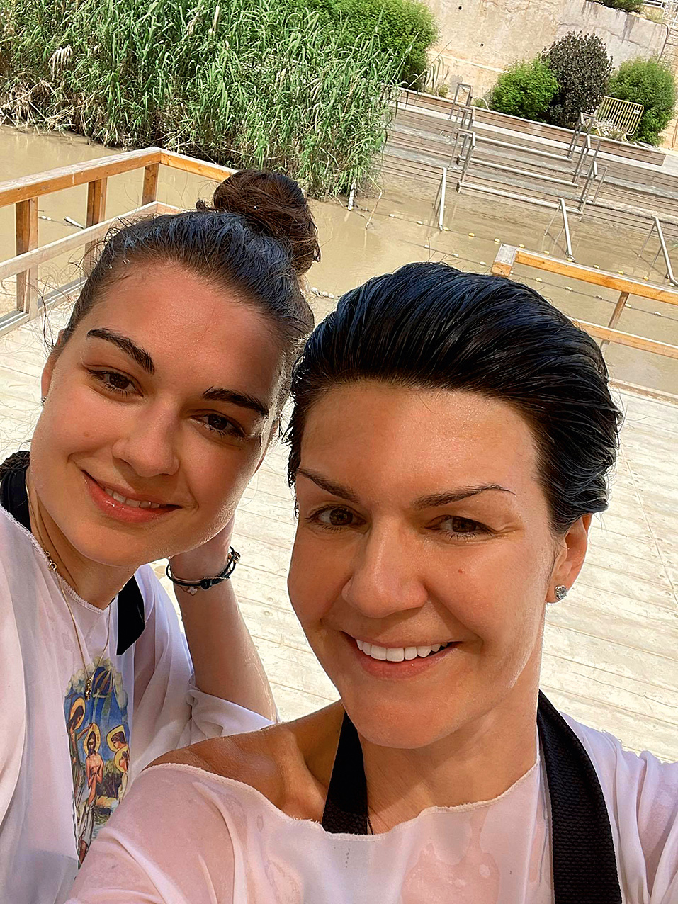 Вода в реке теплая, желтоватая и очень мутная. Мы буквально по колено погрузились в ил. Погружаются в белых рубашках, и мы заранее купили себе такие. И вот что интересно: когда мы окунулись с головой и вышли из воды, рубашки остались белоснежными. Это было похоже на чудо. Иордан – это великая христианская святыня, и обычно на его берегах собирается много людей. В этот раз за 2,5 часа, которые мы пробыли на реке, кроме нас с дочкой и гида со стороны Иордании не было никого. Со стороны Израиля была группа верующих.