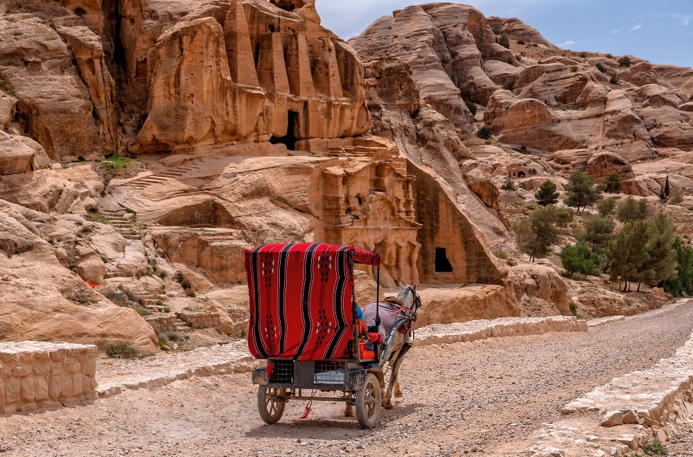 Малолюдно было и в Петре – древнем скальном городе, где останавливались волхвы, неся дары Младенцу Христу. Город впечатляет своими масштабами и сложностью построек. Путь в Петру проходит по каньону. И мы, приехав с утра, были единственными туристами. Уже ближе к обеду стали собираться люди. Но по словам гида, их было намного меньше, чем обычно. Поэтому все внимание бедуинов было направлено на нас: они постоянно предлагали что-то посмотреть, купить сувениры, покататься на ослах или лошадях. Сувениры нас не интересовали, а вот от конной прогулки на обратном пути мы не отказались. Нужно отметить, что в Петре есть где отдохнуть, поесть, погулять. Безусловно, это удивительные места. Но есть нюанс: от автобуса до древнего города нужно пройти 3–4 км по жаре. И если туда вы спускаетесь с горки, обратно нужно подниматься по жаре, что тяжело. Поэтому повозка с лошадьми была спасением для нас. На ней ехать от силы 5 минут, очень сильно трясет, но все же это легче, чем пешком.