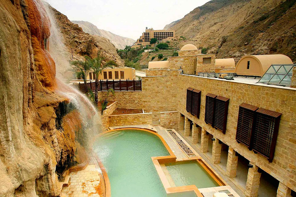 С источниками связано много библейских историй. Считается, что здесь купался царь Иудеи Ирод I Великий. Под водопадом находится природный бассейн с водой температурой 38 градусов, и в нем можно поплавать, а струи воды осуществляют гидромассаж. Здесь же есть и природная сауна с лечебной грязью. Рядом с водопадом расположен отель Ma’in Hot Springs Resort & Spa. Сам отель высокого уровня, но из-за комаров мы не смогли пробыть там дольше суток. Для нас самым удобным вариантом оказалось остановиться в “Кемпински”, там взять трансфер, за 30 минут на автомобиле мы уже были на водопаде.