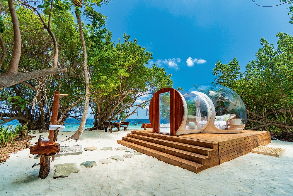 Что может быть романтичнее ночи под звездами? Тем более, когда небо такое чистое, как на Мальдивах, и можно наблюдать, как звезды сверкают над головой. Испытать такие ощущения можно в прозрачном глэмпинге в Amilla Maldives Resort and Residences на острове заповедного атолла Баа.