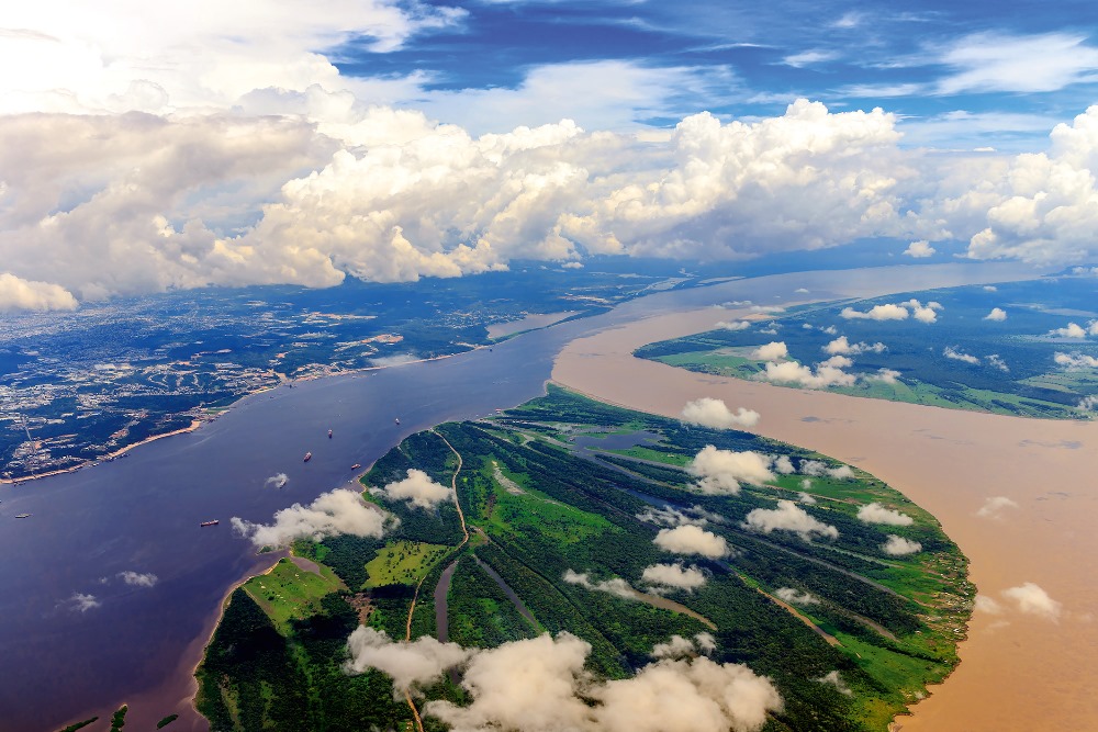 Более пятисот разноцветных притоков наполняют Амазонку водами от темного до желтоватого и мутно-белого оттенков. И недалеко от Манауса можно наблюдать удивительное явление: темная и прозрачная Риу-Негру, впадая в мутную, цвета кофе с молоком Амазонку, на протяжении 15 км течет параллельно в едином русле и только потом сливается.