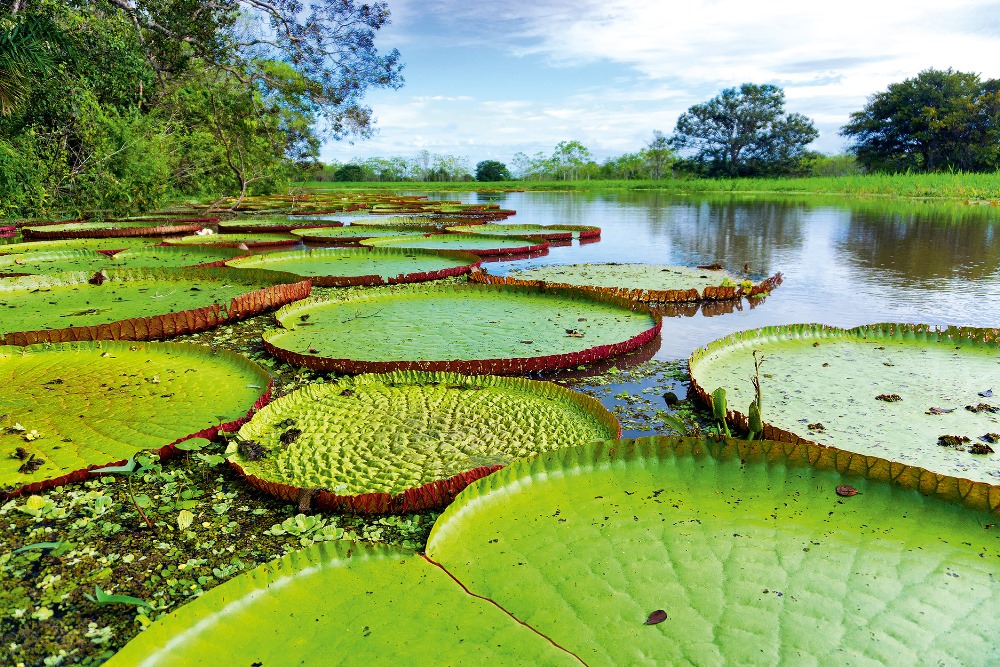 Среди растений есть рекордсмены. Папоротники высотой в несколько метров. Стометровые лианы. Кувшинки виктории амазонской диаметром до 2 метров выдерживают вес до 50 кг. На большом хлопковом дереве распускаются 650 тысяч цветов, которые содержат 200 литров нектара. А дерево Coccoloba gigantifolia при высоте 15 метров имеет листья длиной 2,5 метра!