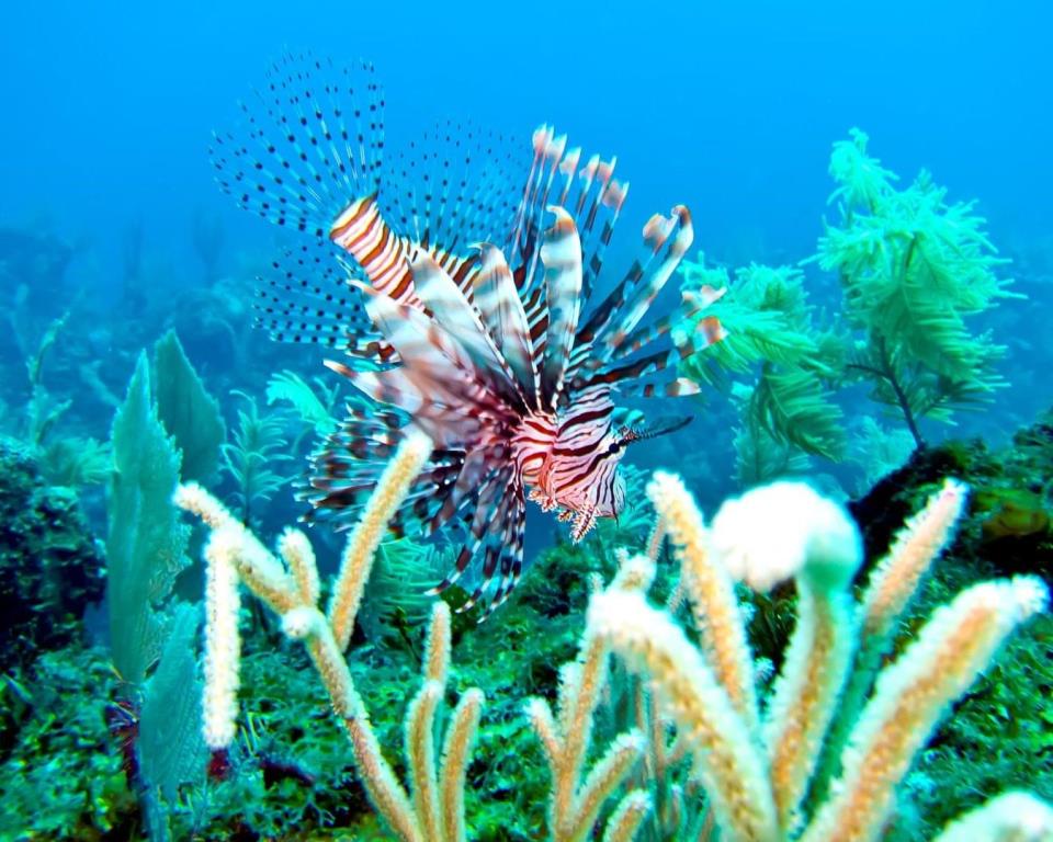 Одно из популярных мест для погружений – стена Браунинг, уходящая вглубь на 60 метров, покрытая мягкими кораллами и губками;