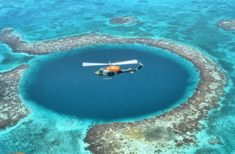 • Большая голубая дыра, Белиз. Круглая воронка диаметром 305 м и глубиной 120 м открывает дайверам мир затопленных пещер со сталактитами и сталагмитами. Их система настолько запутанная, что погружаться следует только в составе организованных туров и держаться группы.