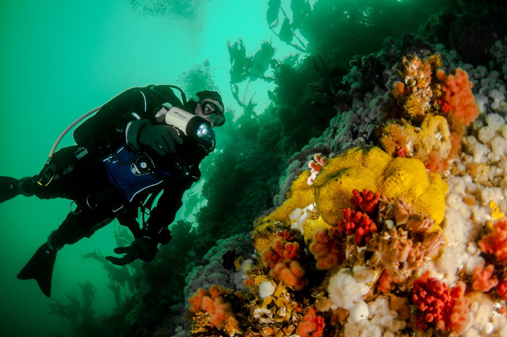 • канадский остров Ванкувер – одно из лучших мест для дайвинга в холодной воде. В ее прозрачной толще можно в деталях рассмотреть таких гигантов, так угревидных зубаток, морских львов, гигантских осьминогов, морских звезд-подсолнухов, оборочных анемон. Здесь сохраняется видимость на 25 метров, а вода настолько полна жизнью, что не уступает по красочности тропическим широтам.