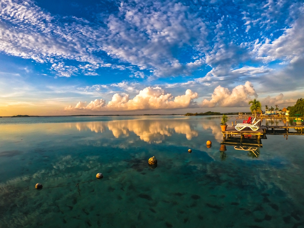 Озеро, или лагуна, Бакалар в штате Кинтана-Роо, по соседству с Белизом, знаменито своим ослепительно голубым цветом. Говорят, что на его поверхности “семь оттенков синего”: от яркой лазури до насыщенного кобальта. Вода здесь удивительно прозрачна, красива и чудо как хороша для дайвинга, снорклинга, плавания и гребли на каяках. Особенно великолепно озеро на рассвете и на закате – настоящий райский уголок.